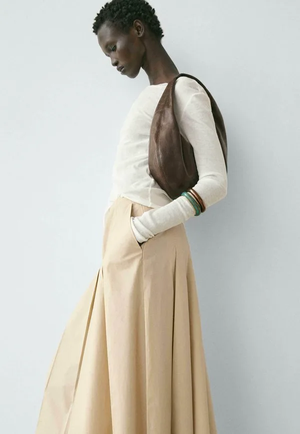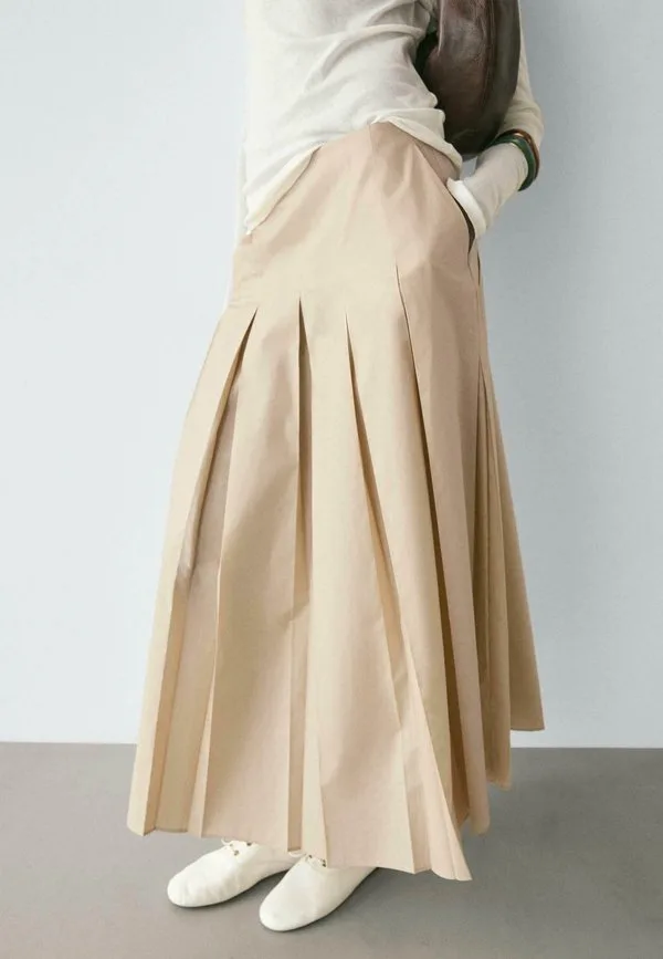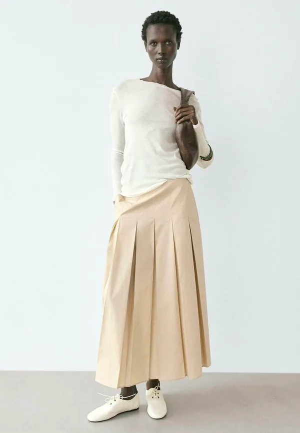 Плиссированная юбка миди Massimo Dutti, Sand