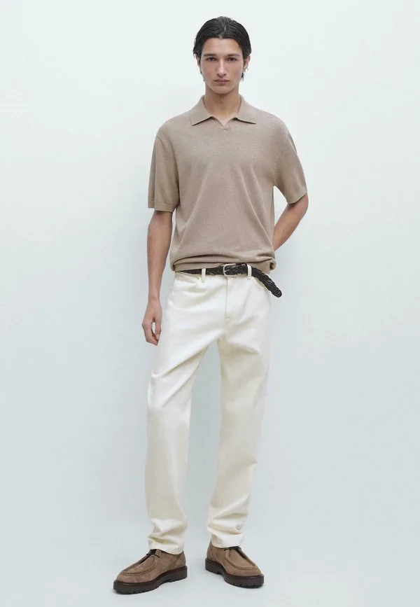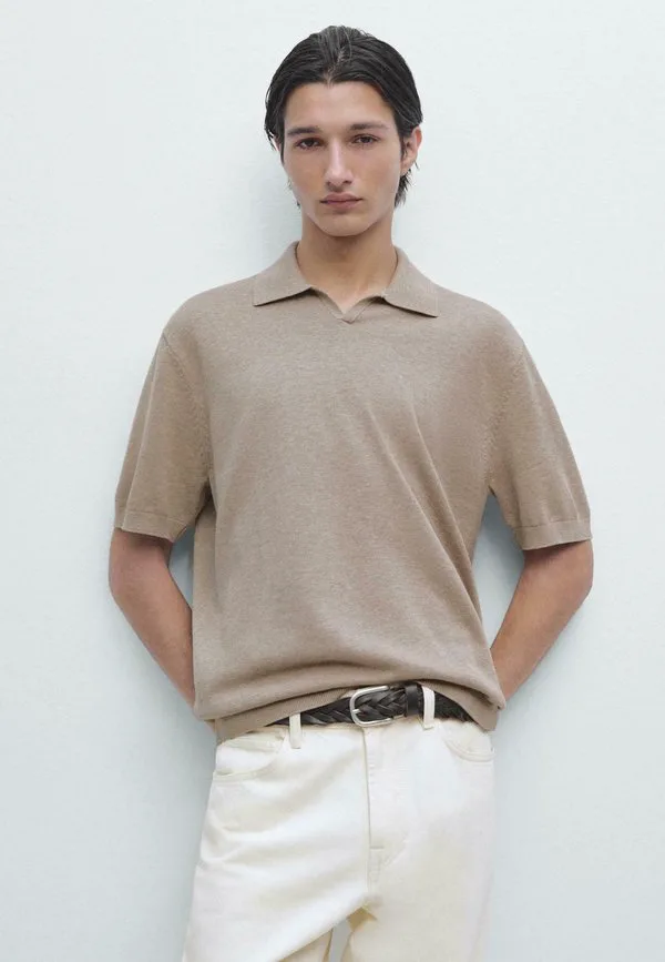 Рубашка-Поло из смешанной ткани Massimo Dutti, Sand