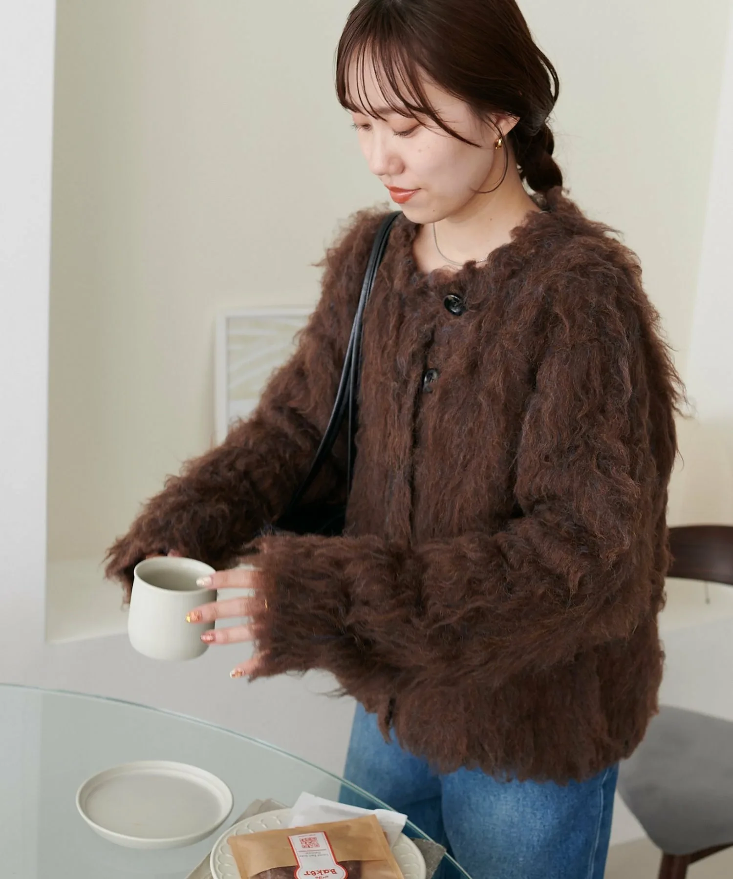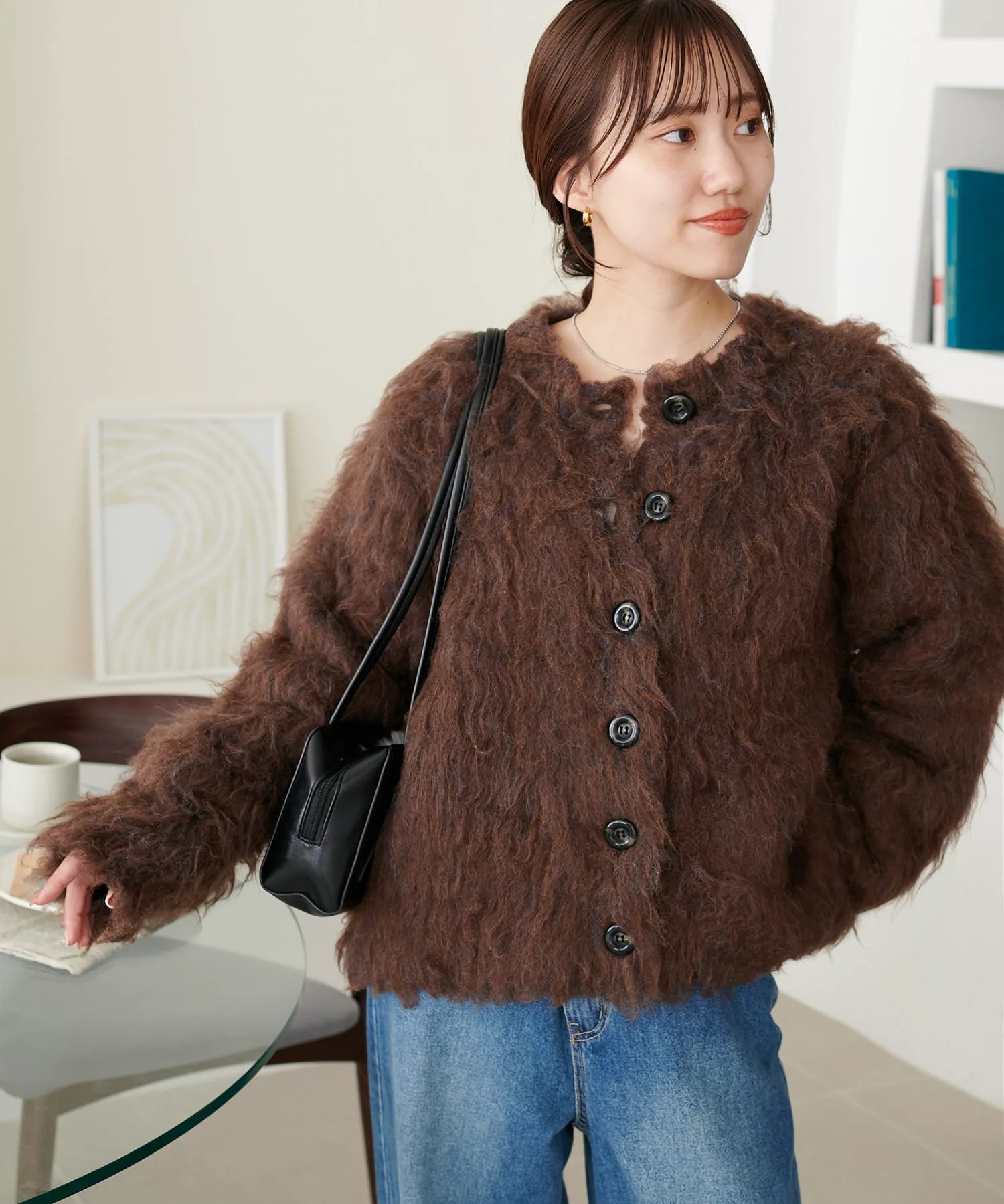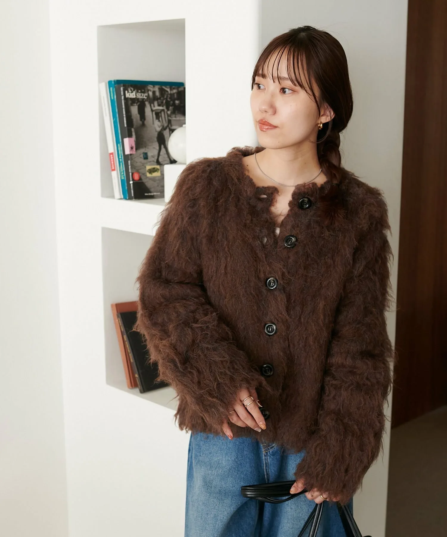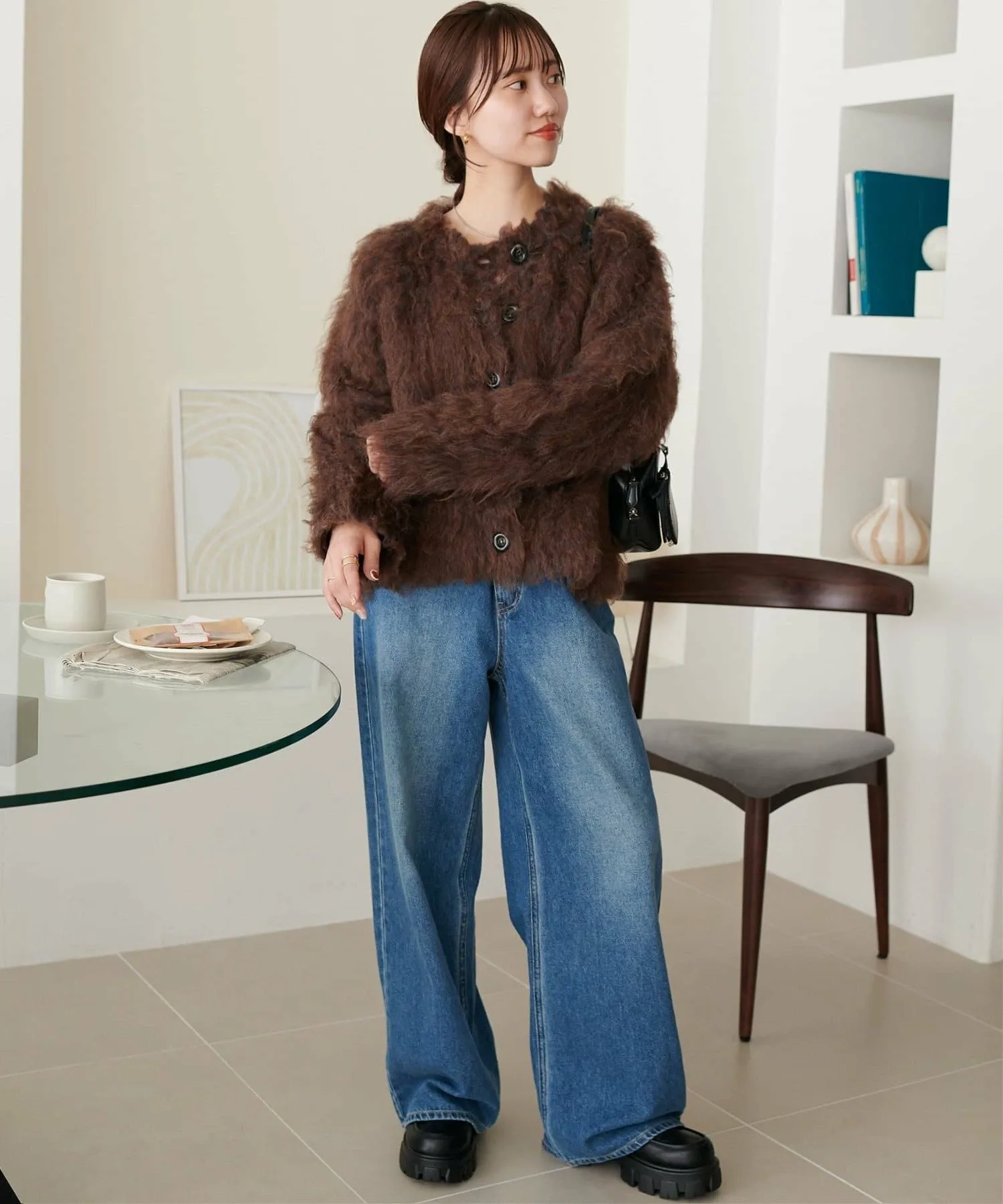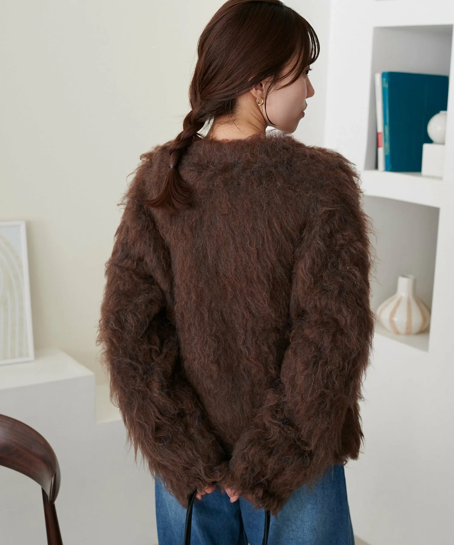 Сотрудники ростом 162 см: Пушистая текстура милая и выглядит великолепно даже в сочетании с простыми брюками.◎Длина чуть ниже талии, что позволяет легко сочетать его как с брюками, так и с юбками.