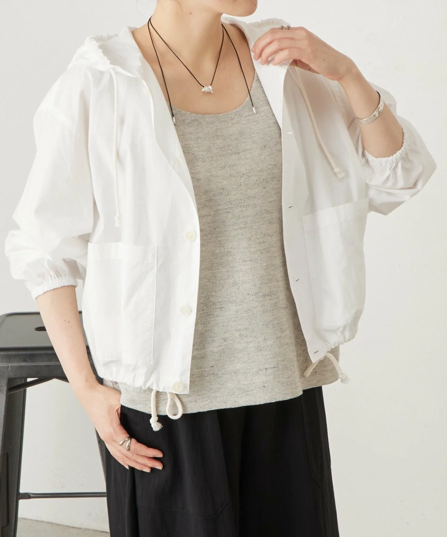 Низ имеет шнурок, позволяющий регулировать силуэт, затягивая его.
