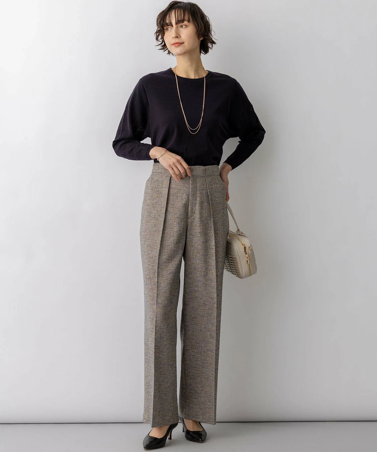 Этот пуловер с рукавами три четверти украшен привлекательным, нежным кружевным узором на рукавах и воротнике. Умеренно свободные рукава естественно закрывают предплечья, создавая чистый, красивый силуэт без лишнего объема. Волнистые манжеты добавляют нотку утонченности и элегантности рукам. Сочетайте его с простыми брюками для изысканного образа или с юбкой для утонченного, утонченного образа. Наслаждайтесь разнообразием образов в зависимости от того, с чем вы его сочетаете. Доступен в трех цветах: слоновая кость (#002), который осветляет и смягчает лицо; дымчато-зеленый (#063), который имеет сдержанный, шикарный оттенок; и темно-синий (#075), который придает изысканное, утонченное впечатление.