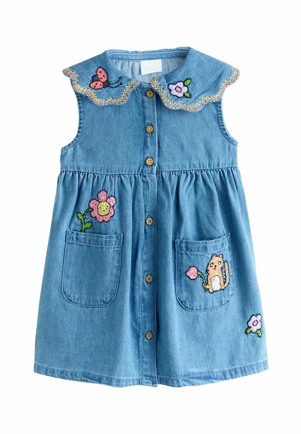 Джинсовое платье прямого кроя с воротником Next, Character Embroidered
