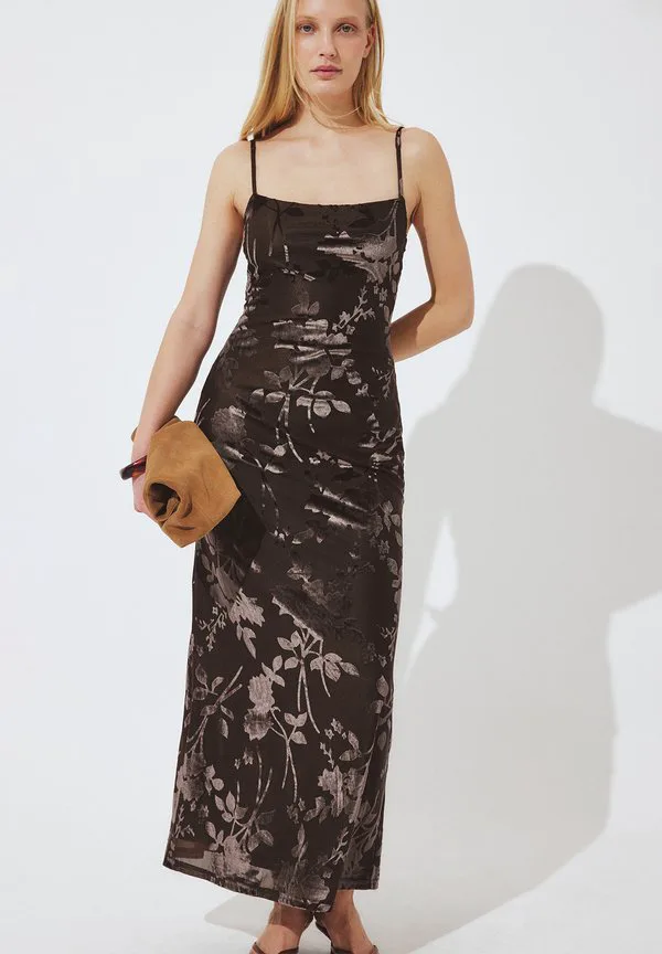 Макси-Платье с цветочным принтом Na-Kd, Chocolate Brown 8 606₽