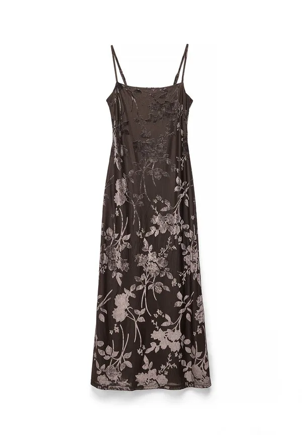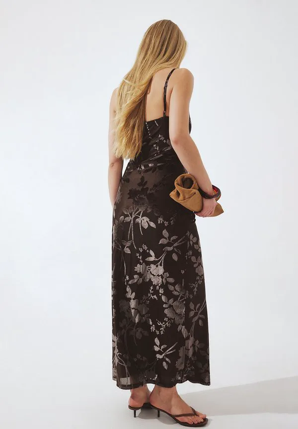 Макси-Платье с цветочным принтом Na-Kd, Chocolate Brown