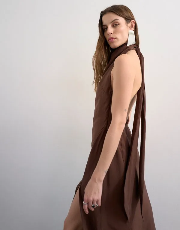 Платье-Макси с воротником-халтером Topshop, Chocolate Brown