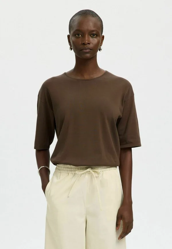 Mit 2/4 ärmeln basic tshirt Selected, Chocolate Chip 8 063₽