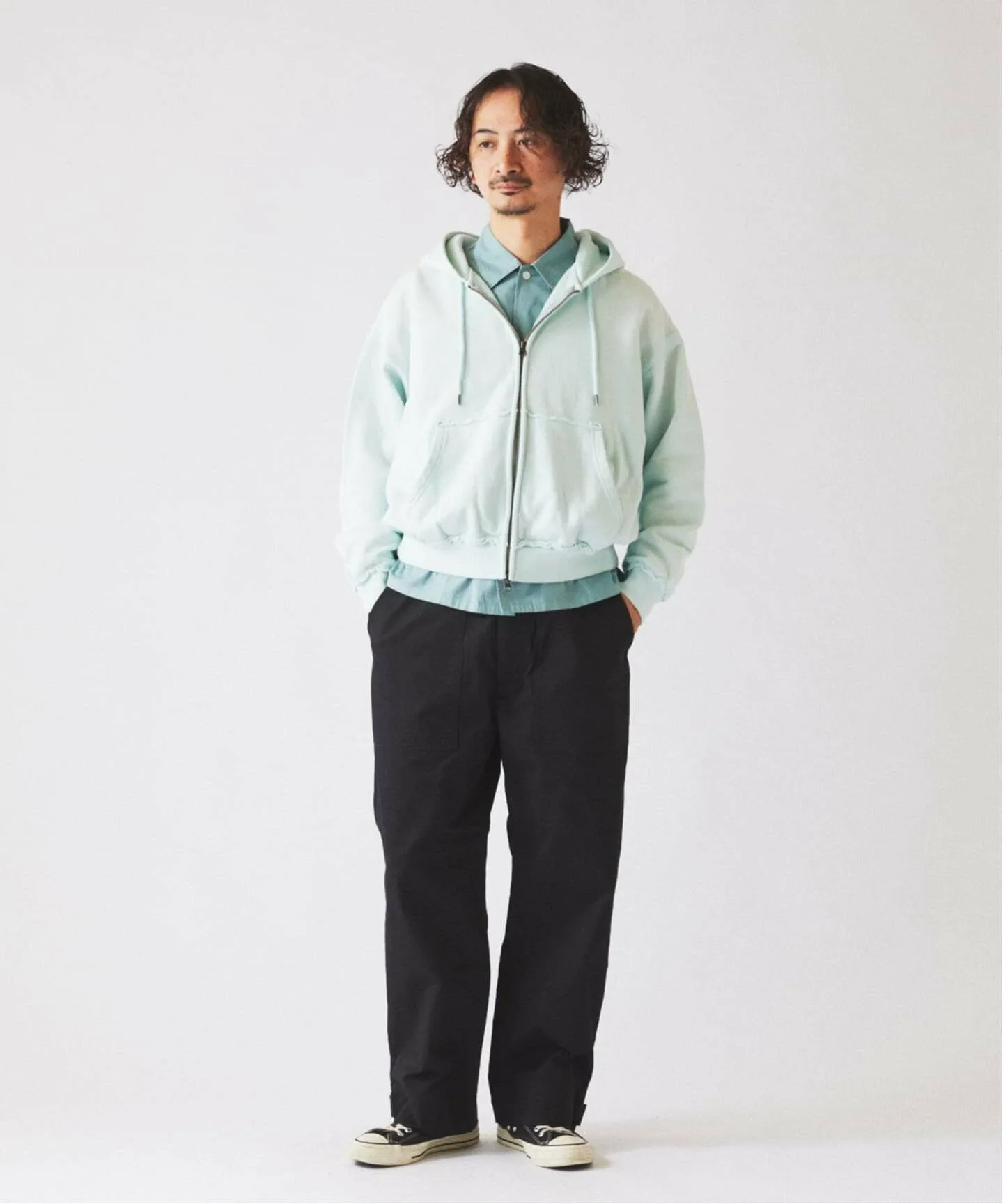 ・В обычном виде: силуэт «полуширокий прямой» с современным, расслабленным ощущением.