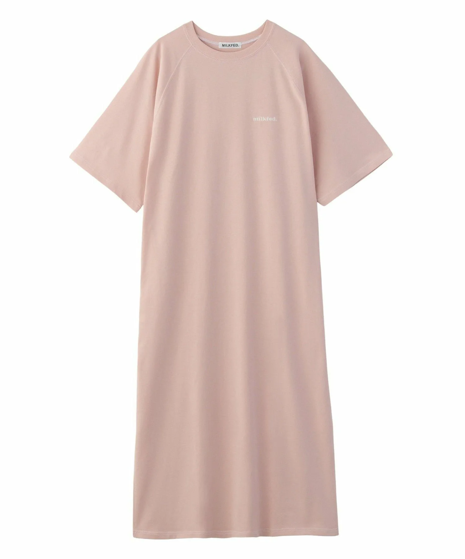 Платье с рукавами реглан, украшенное контрастной строчкой.