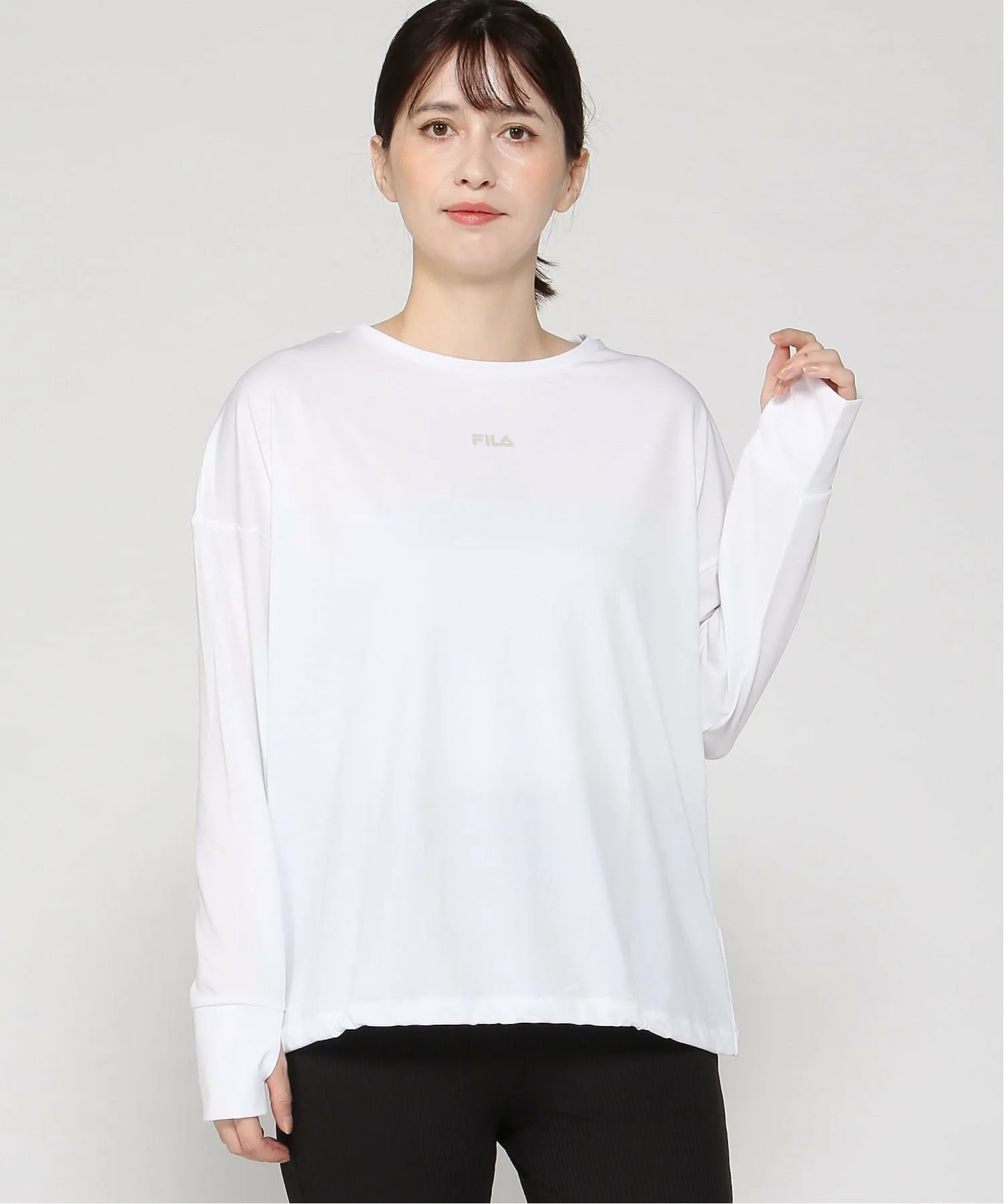 Выпущена модель пуловера с длинными рукавами и защитой от УФ-излучения, идеально подходящая как для повседневной носки, так и для активного отдыха и занятий спортом. Изготовленная из 100% полиэстера, она имеет гладкую, струящуюся текстуру, что делает ее удобной для повседневной носки, а также потому, что она не прилипает к коже при потоотделении. Доступна в базовых однотонных цветах, что позволяет легко сочетать ее с другой одеждой. Рост модели: 165 см, размеры: BK, MOC, WT/M