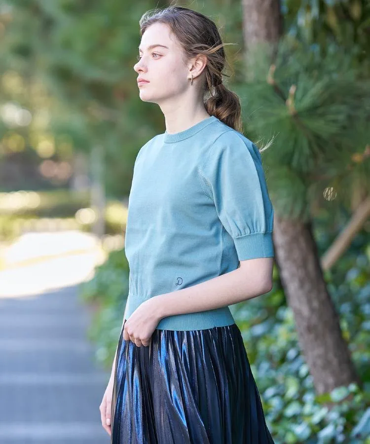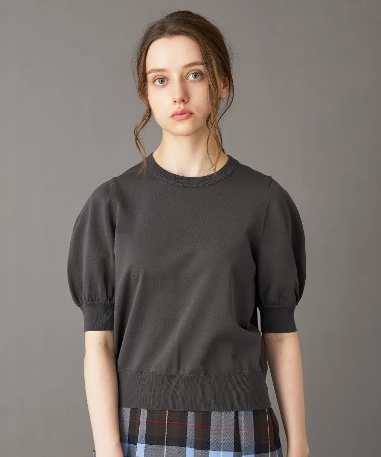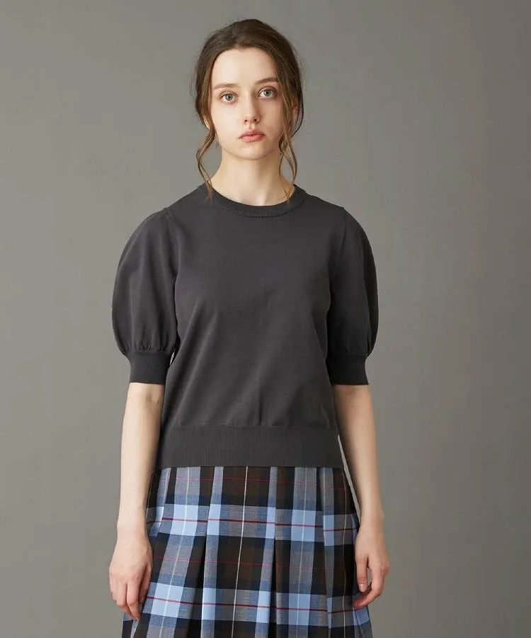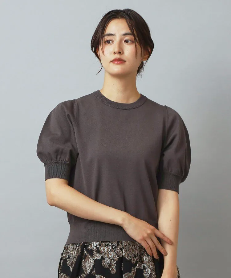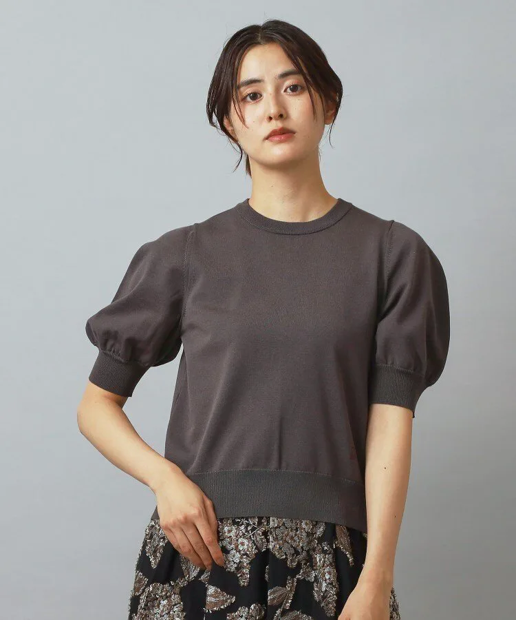 Элегантный пуловер с короткими рукавами и изящными пышными рукавами в качестве центрального элемента.