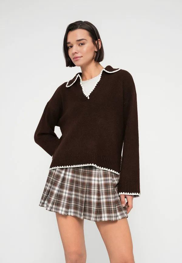 Детальный джемпер виязмина Vila, Coffee Bean/White 5 771₽