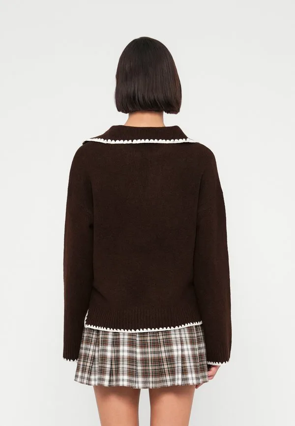 Детальный джемпер виязмина Vila, Coffee Bean/White
