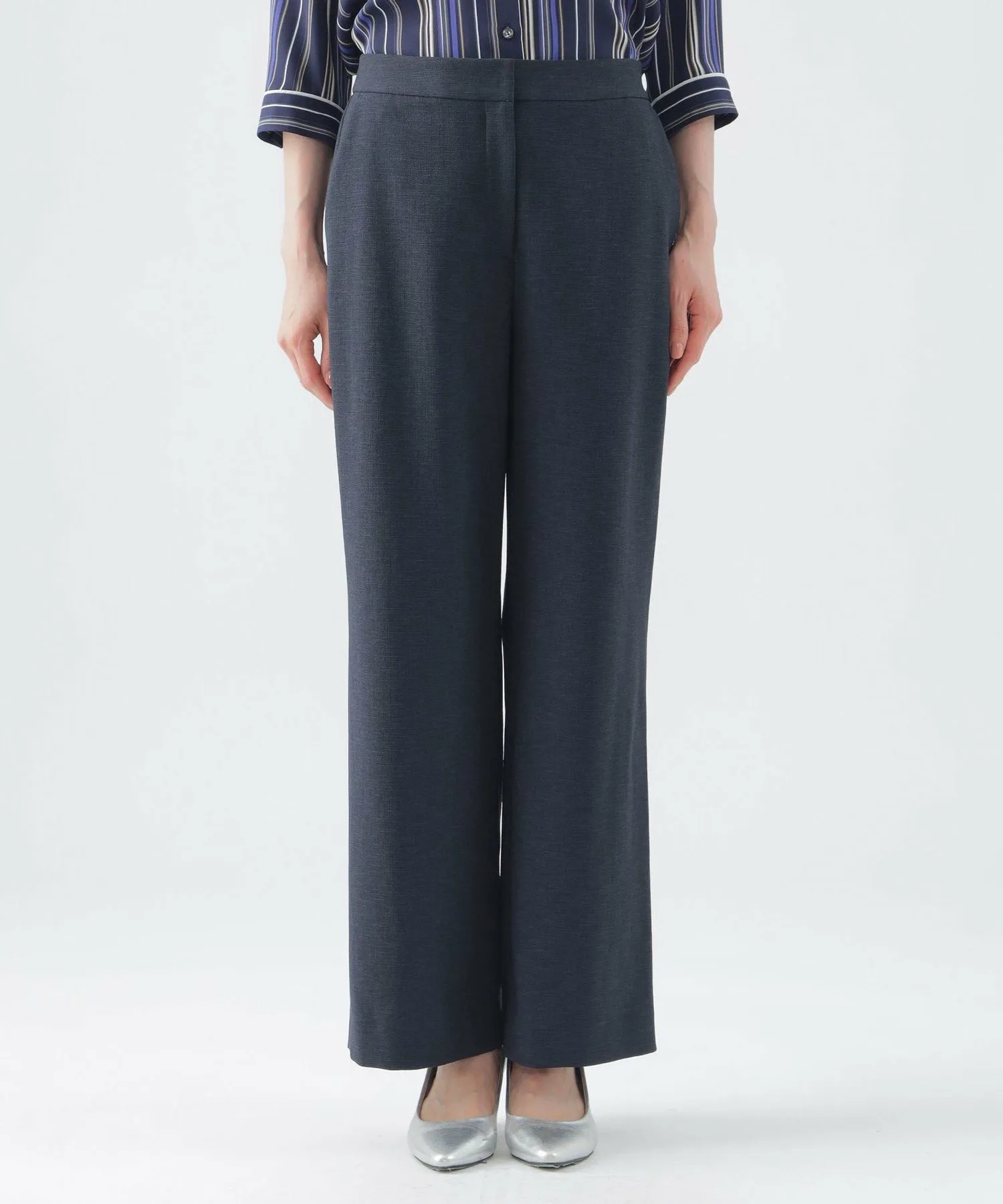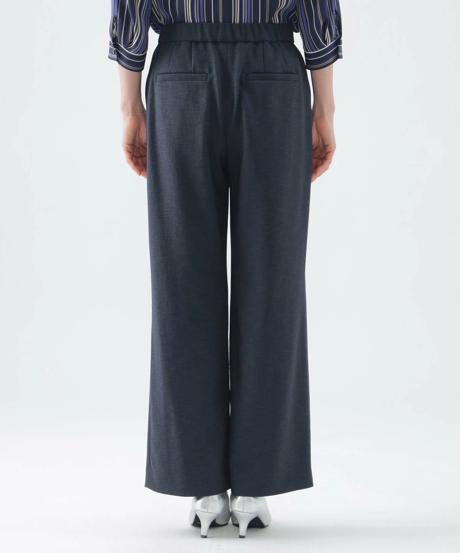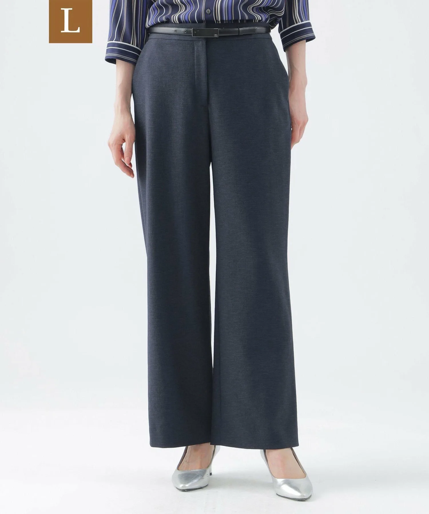 Эти широкие прямые брюки не имеют центральной складки, что позволяет легко сочетать их с повседневной одеждой. Эластичный пояс сзади доходит до подмышек, обеспечивая удобную посадку. Их можно носить с подходящим жакетом без воротника (U3E02530) или отдельно. *Размер L имеет боковые карманы L-образной формы.