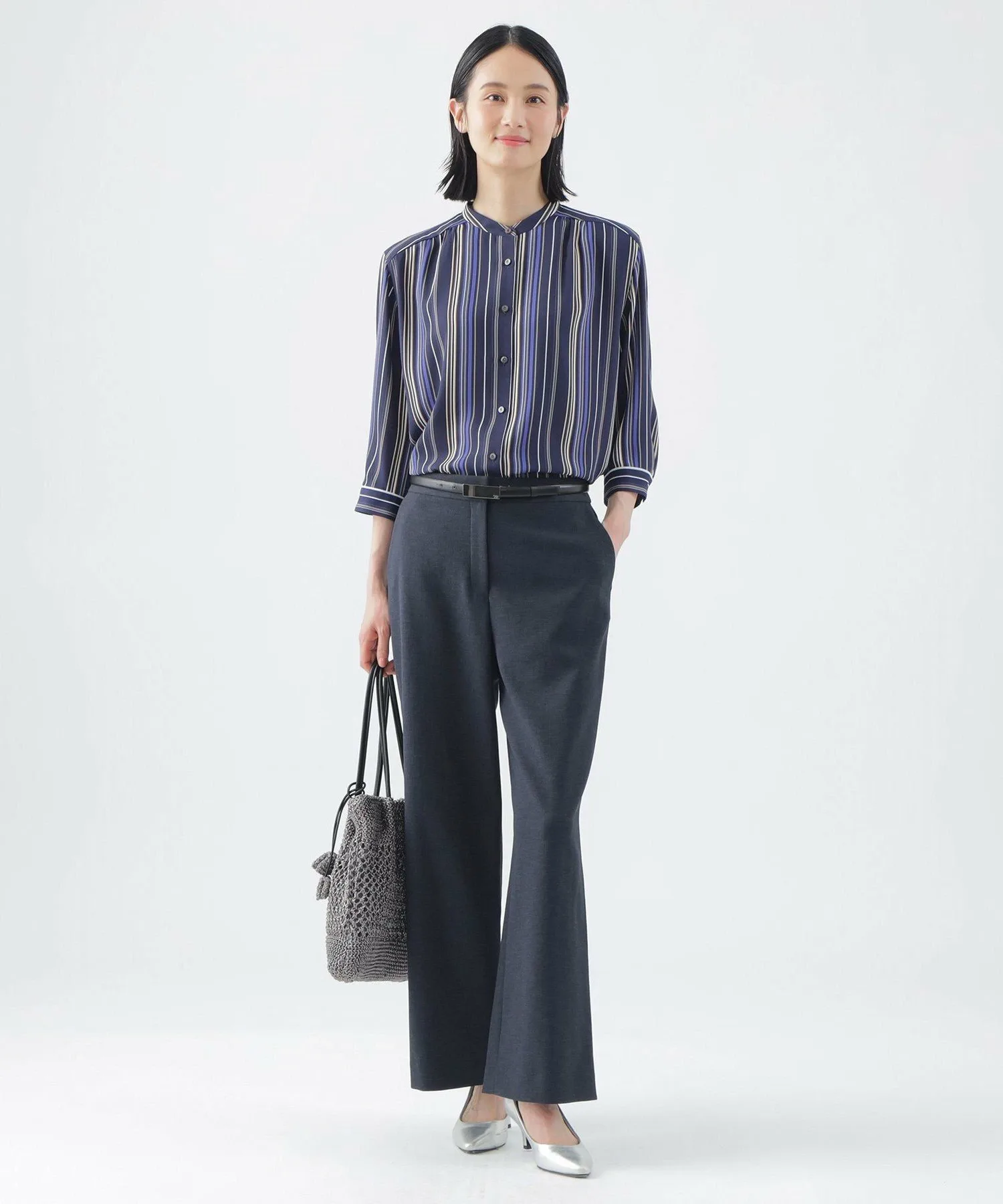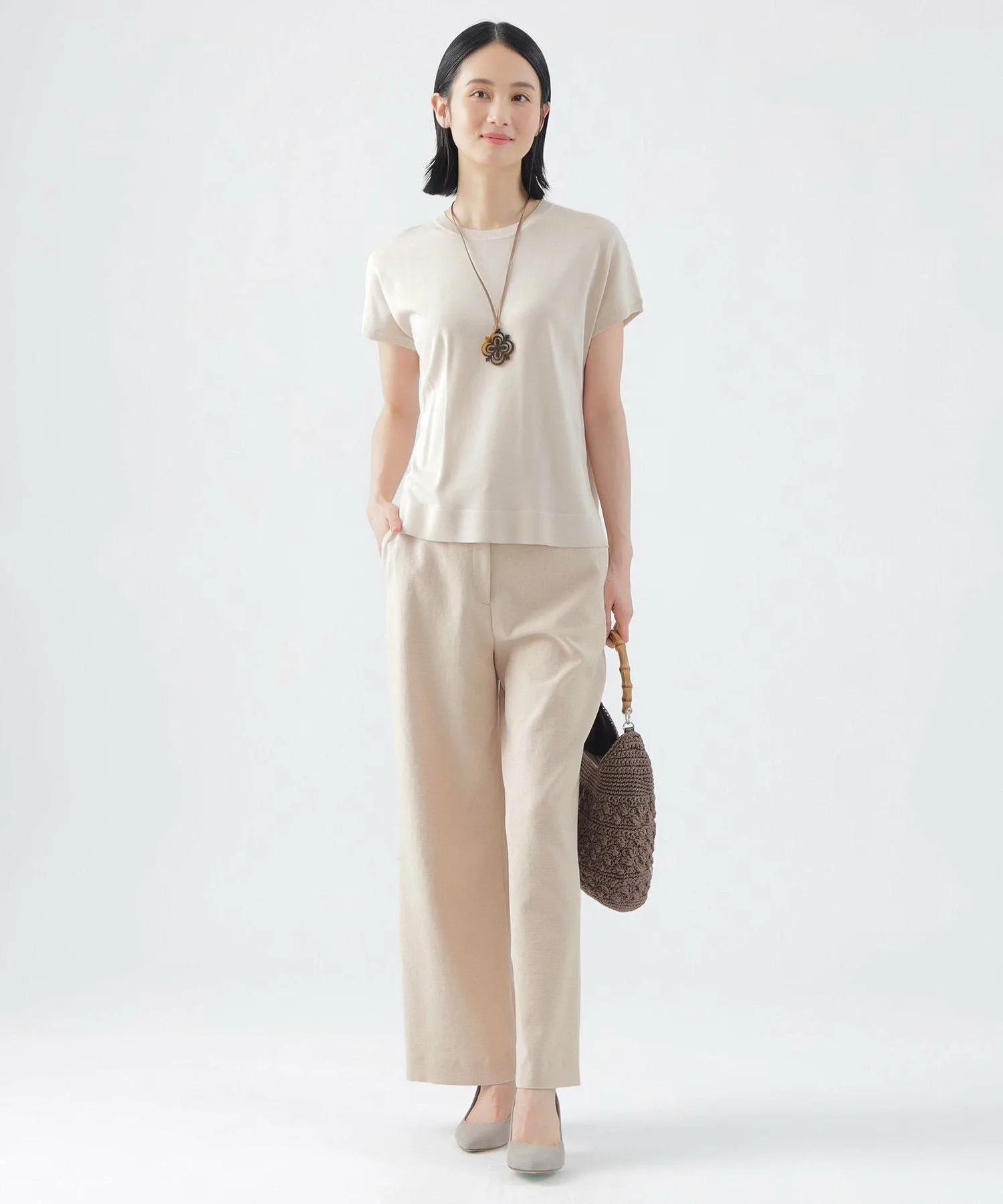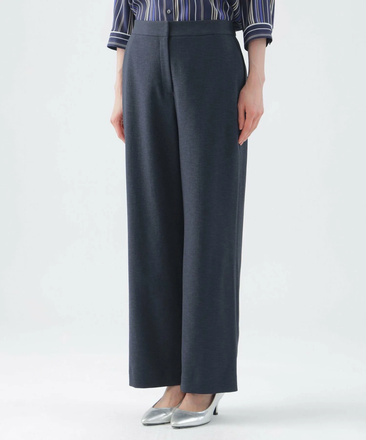 Эти широкие прямые брюки не имеют центральной складки, что позволяет легко сочетать их с повседневной одеждой. Эластичный пояс сзади доходит до подмышек, обеспечивая удобную посадку. Их можно носить с подходящим жакетом без воротника (U3E02530) или отдельно. *Размер L имеет боковые карманы L-образной формы.