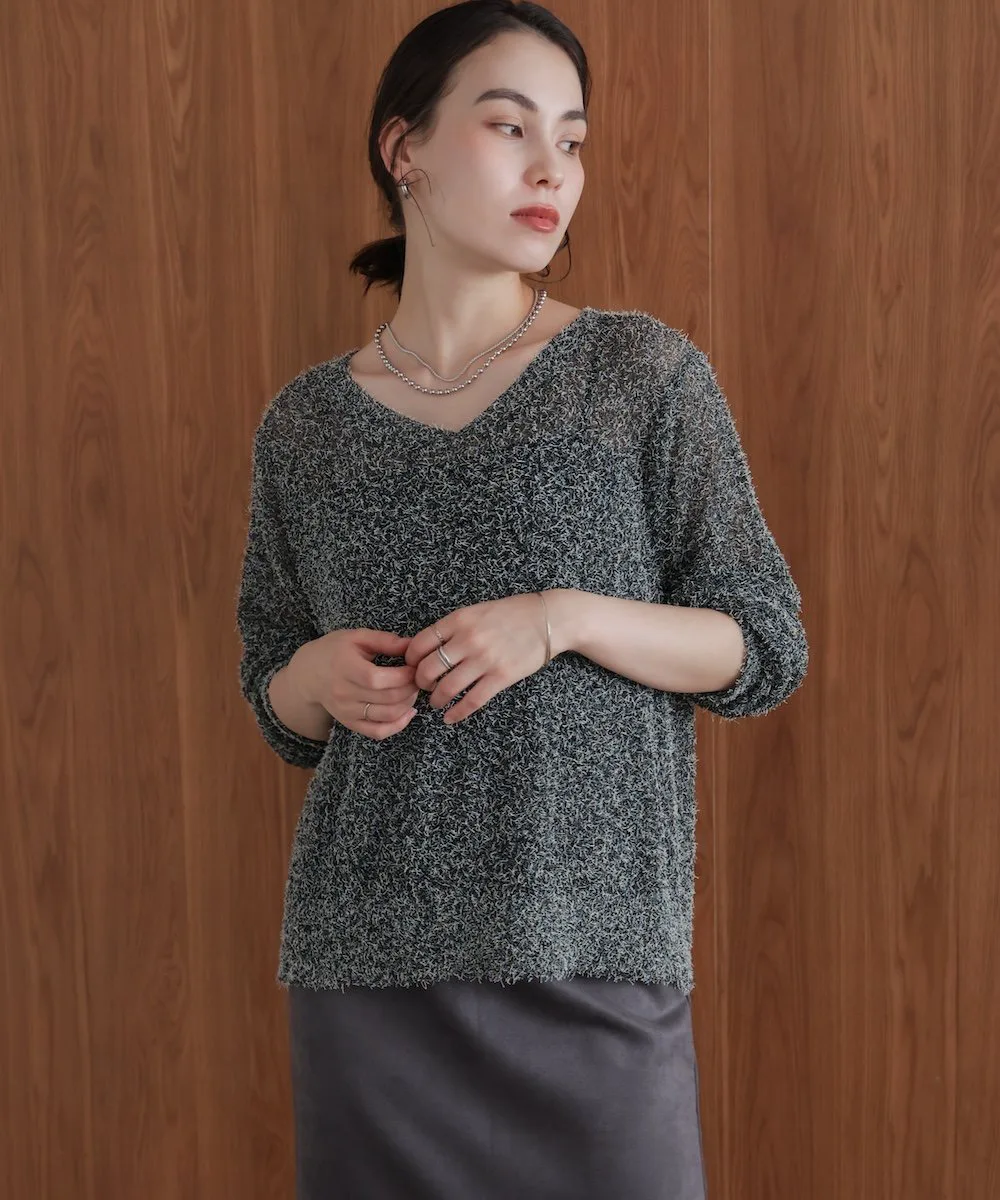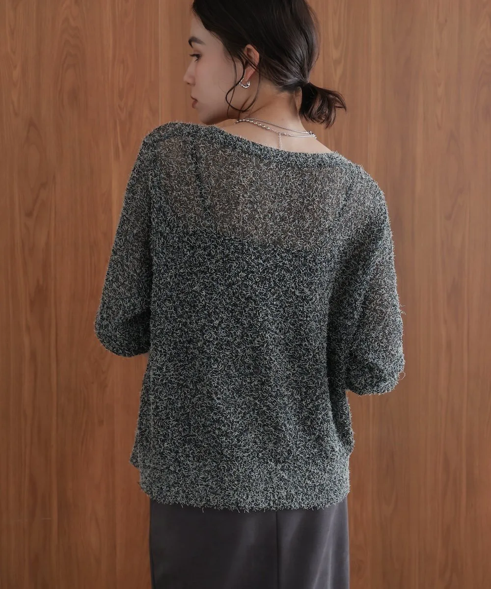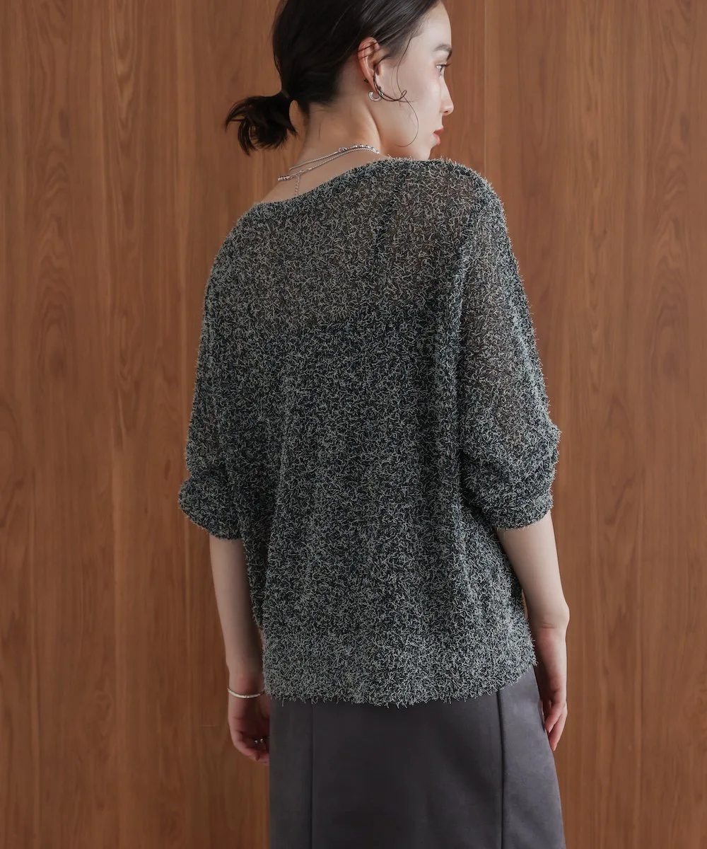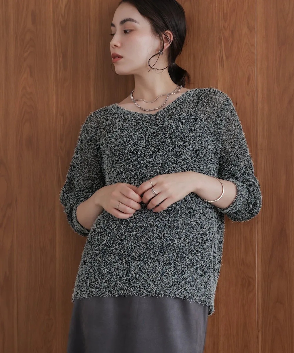 ТКАНЬТрикотаж, выполненный из темной пряжи в сочетании с цветной петлевой пряжей. Он полупрозрачный на ощупь, но пушистая текстура придает ему милый, объемный вид. Полупрозрачный трикотаж для взрослых с оптимальной степенью прозрачности.