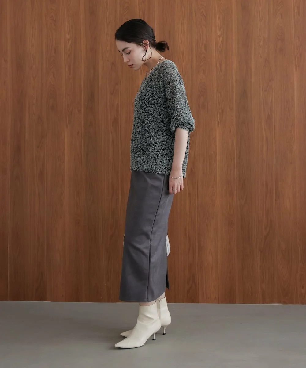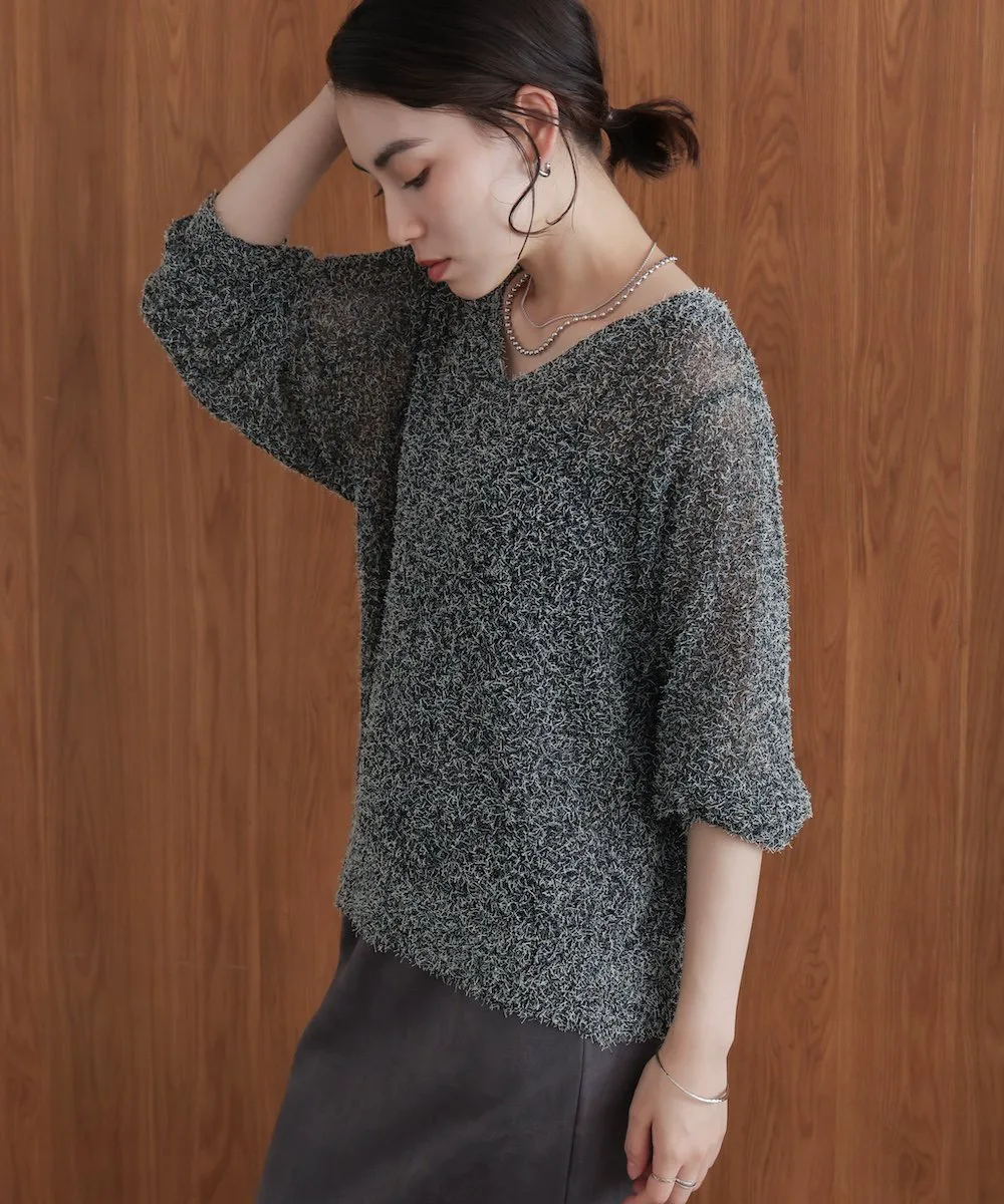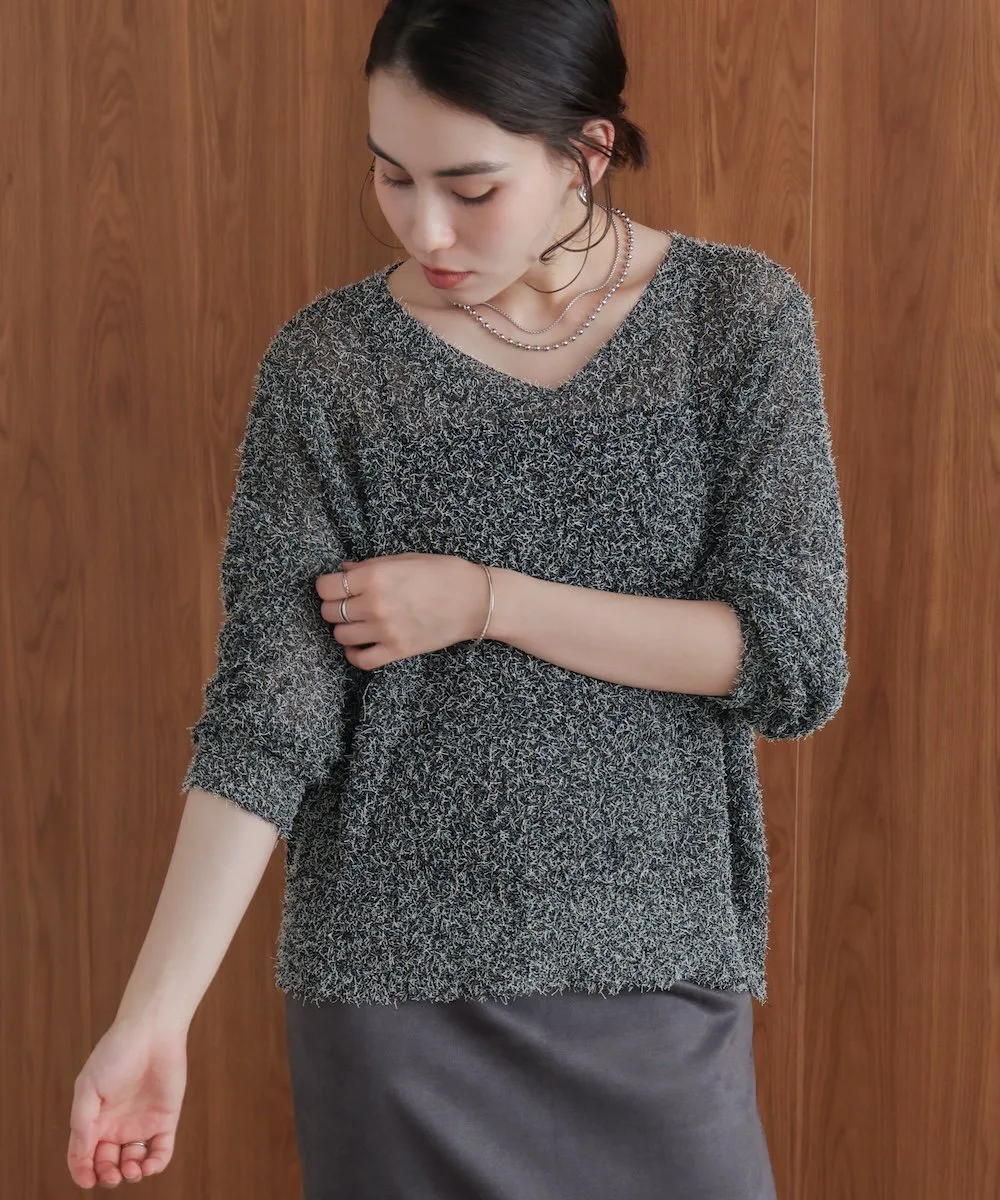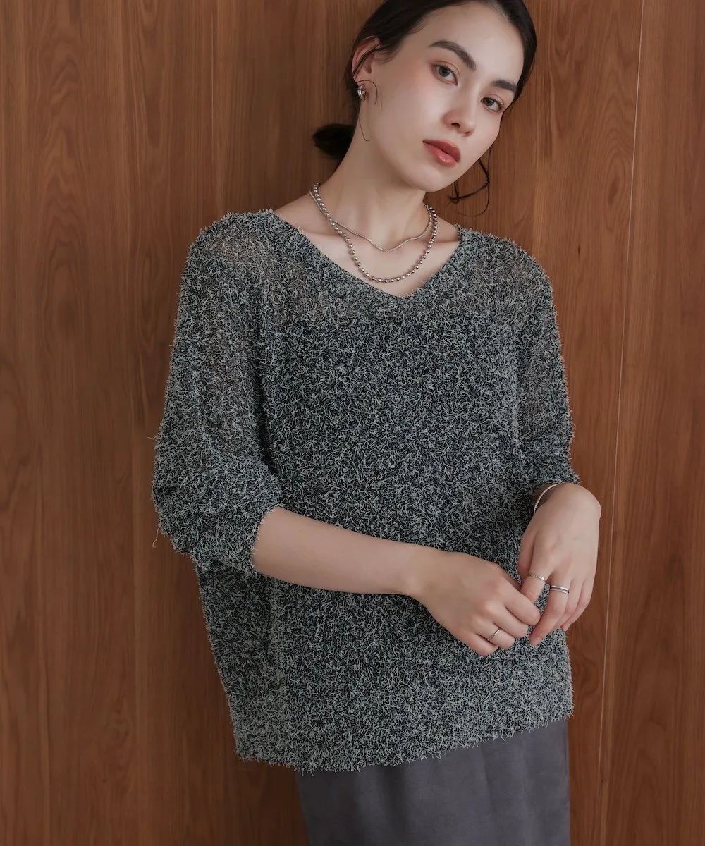 ТКАНЬТрикотаж, выполненный из темной пряжи в сочетании с цветной петлевой пряжей. Он полупрозрачный на ощупь, но пушистая текстура придает ему милый, объемный вид. Полупрозрачный трикотаж для взрослых с оптимальной степенью прозрачности.