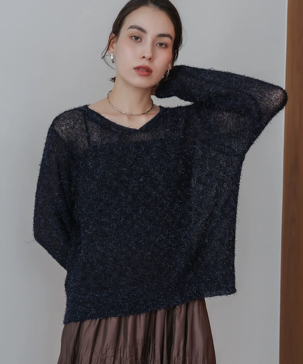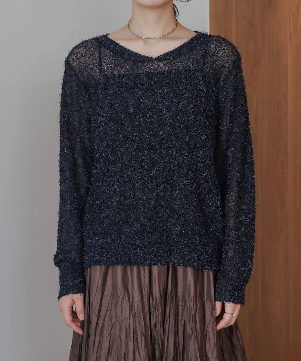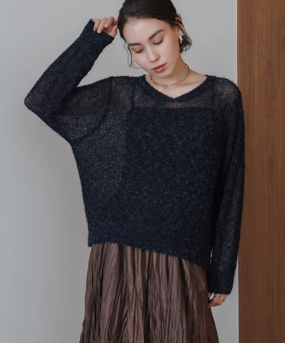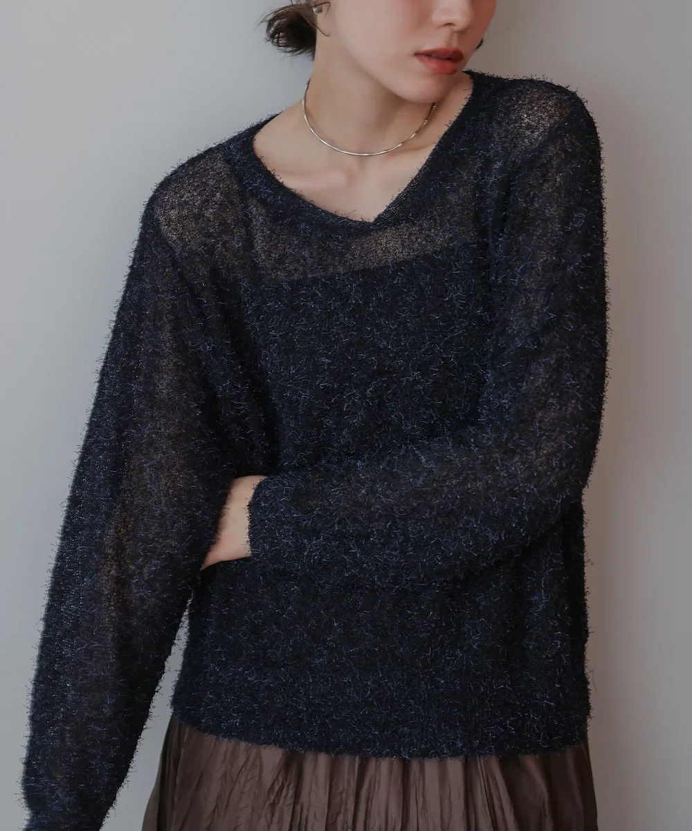 ТКАНЬТрикотаж, выполненный из темной пряжи в сочетании с цветной петлевой пряжей. Он полупрозрачный на ощупь, но пушистая текстура придает ему милый, объемный вид. Полупрозрачный трикотаж для взрослых с оптимальной степенью прозрачности.