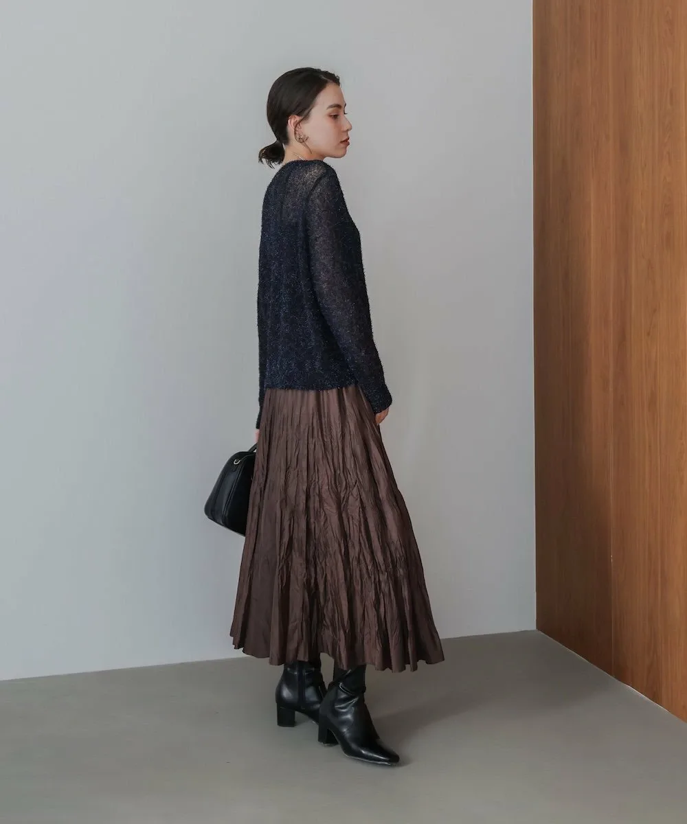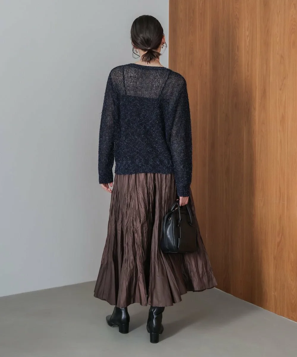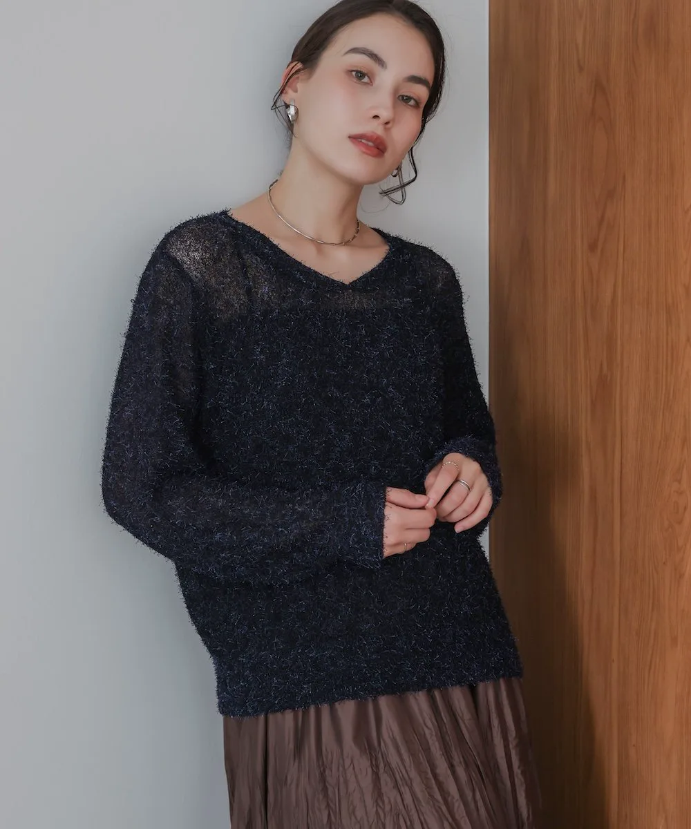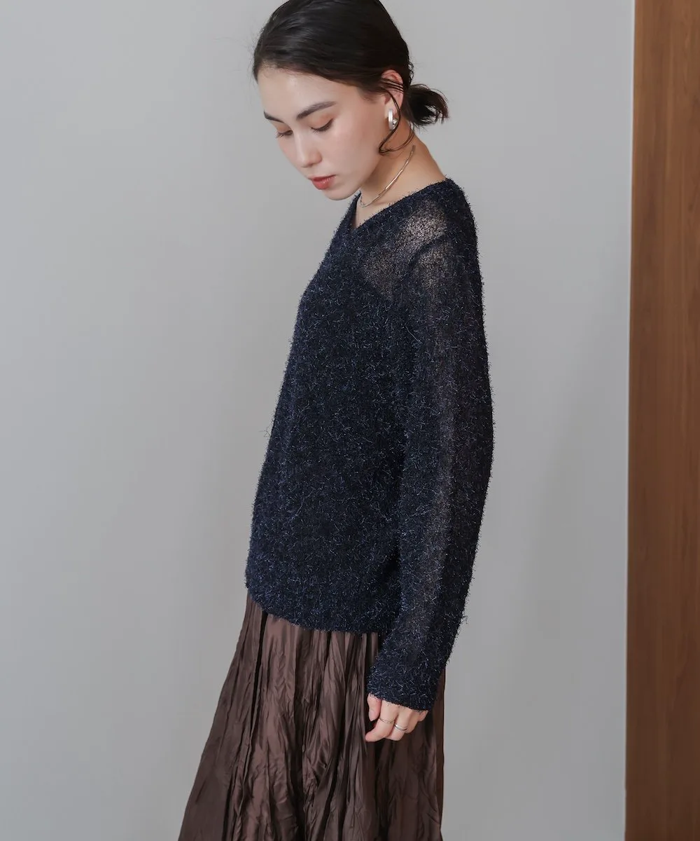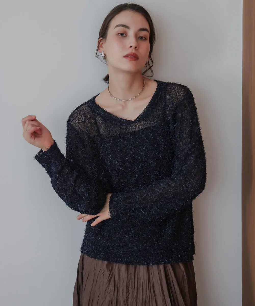 ТКАНЬТрикотаж, выполненный из темной пряжи в сочетании с цветной петлевой пряжей. Он полупрозрачный на ощупь, но пушистая текстура придает ему милый, объемный вид. Полупрозрачный трикотаж для взрослых с оптимальной степенью прозрачности.
