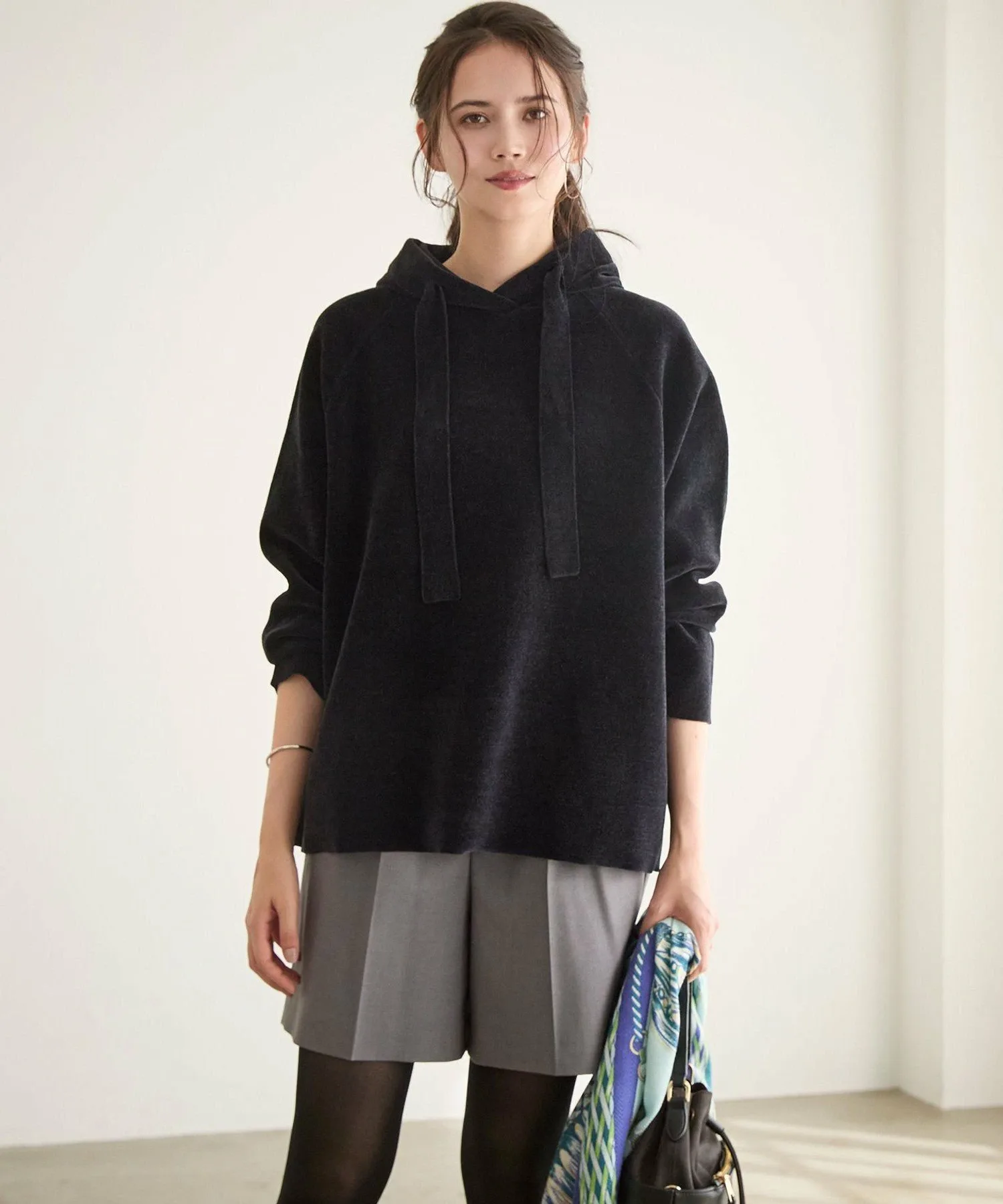 Эти шорты идеально сочетаются с трикотажными топами. Они добавят свежий акцент вашему повседневному образу. Насыщенный цвет и элегантная текстура создают непринужденный, но в то же время изысканный образ. Сочетание их с высокими сапогами добавит веса вашим ногам, создавая зрелый и сбалансированный образ. Изготовленные из легко моющегося материала, они идеально подходят для повседневной носки, позволяя вам без труда оставаться стильной даже в напряженные дни. Сочетайте их с объемным трикотажем для модного, расслабленного образа. Они универсальны. Доступны в двух цветах: светло-серый (#003), который создает изысканный и утонченный образ, и черный (#005), классический цвет, который легко сочетается с любым топом.