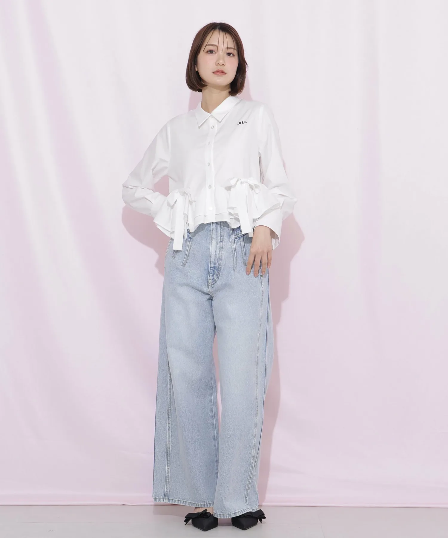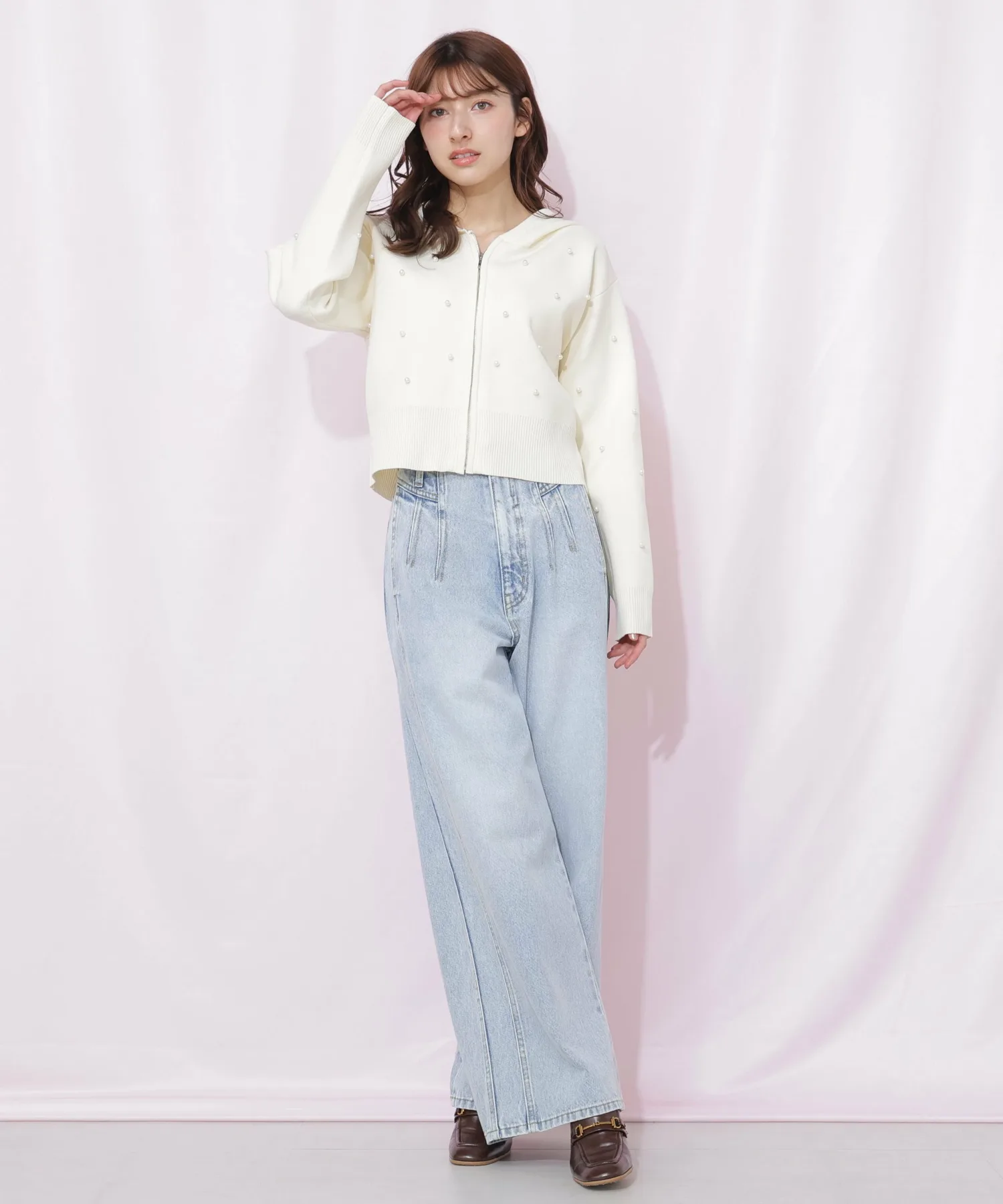 Широкие джинсы с трехмерным кроем. Благодаря оптимальному объему, они естественно подчеркивают линии ног. Простые, но с вниманием к деталям, они создают утонченное впечатление. Мы также рекомендуем сочетать их с джинсовой курткой, украшенной жемчугом и драгоценными камнями. Универсальная вещь, которую можно носить каждый день.