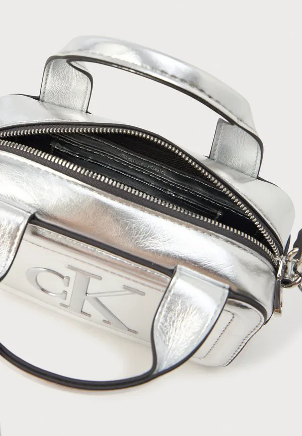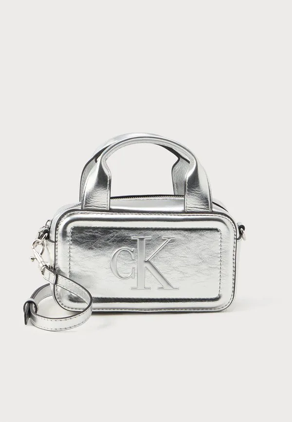 Яркая мини-сумочка-баулетто. Calvin Klein, Silver-Coloured