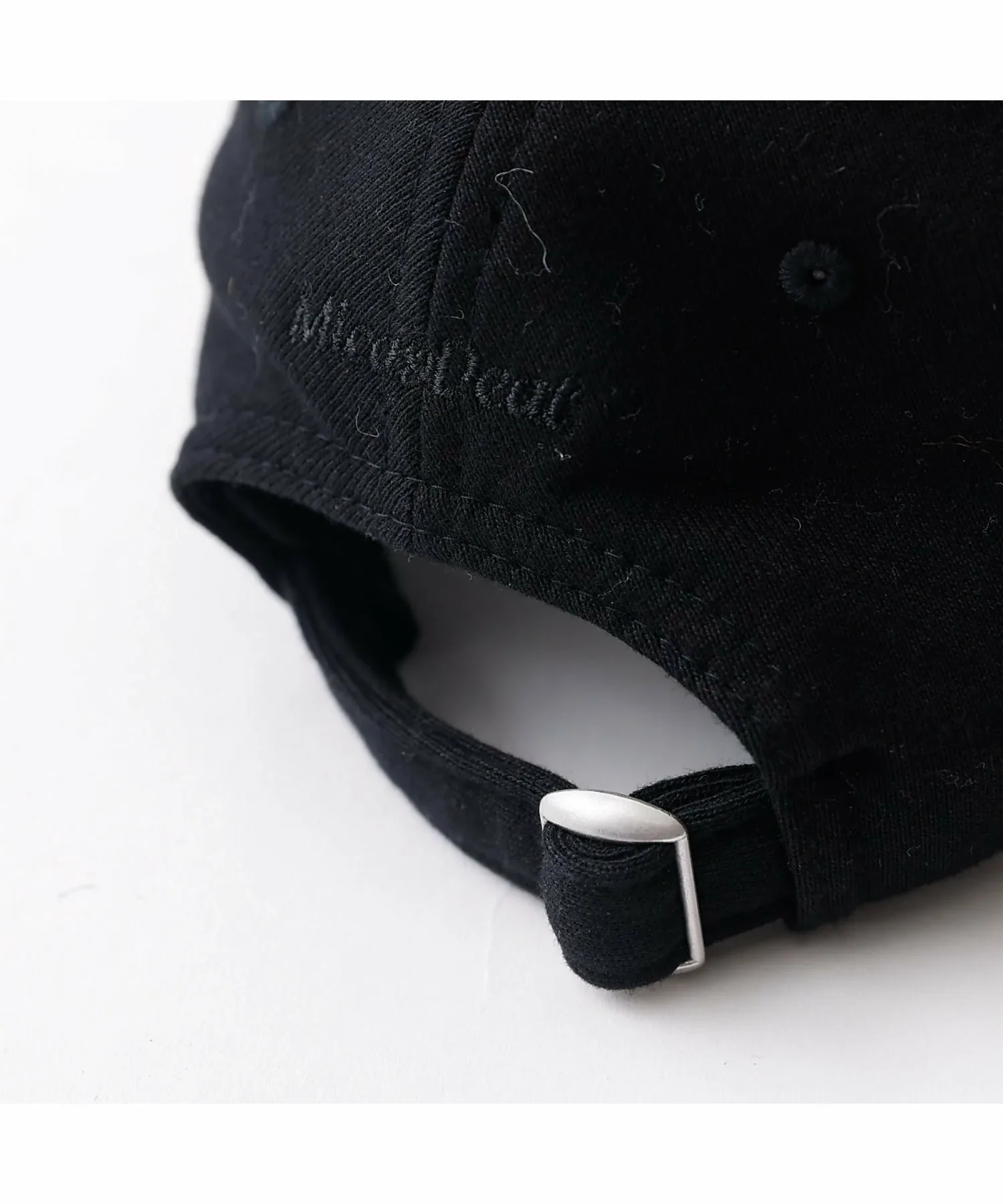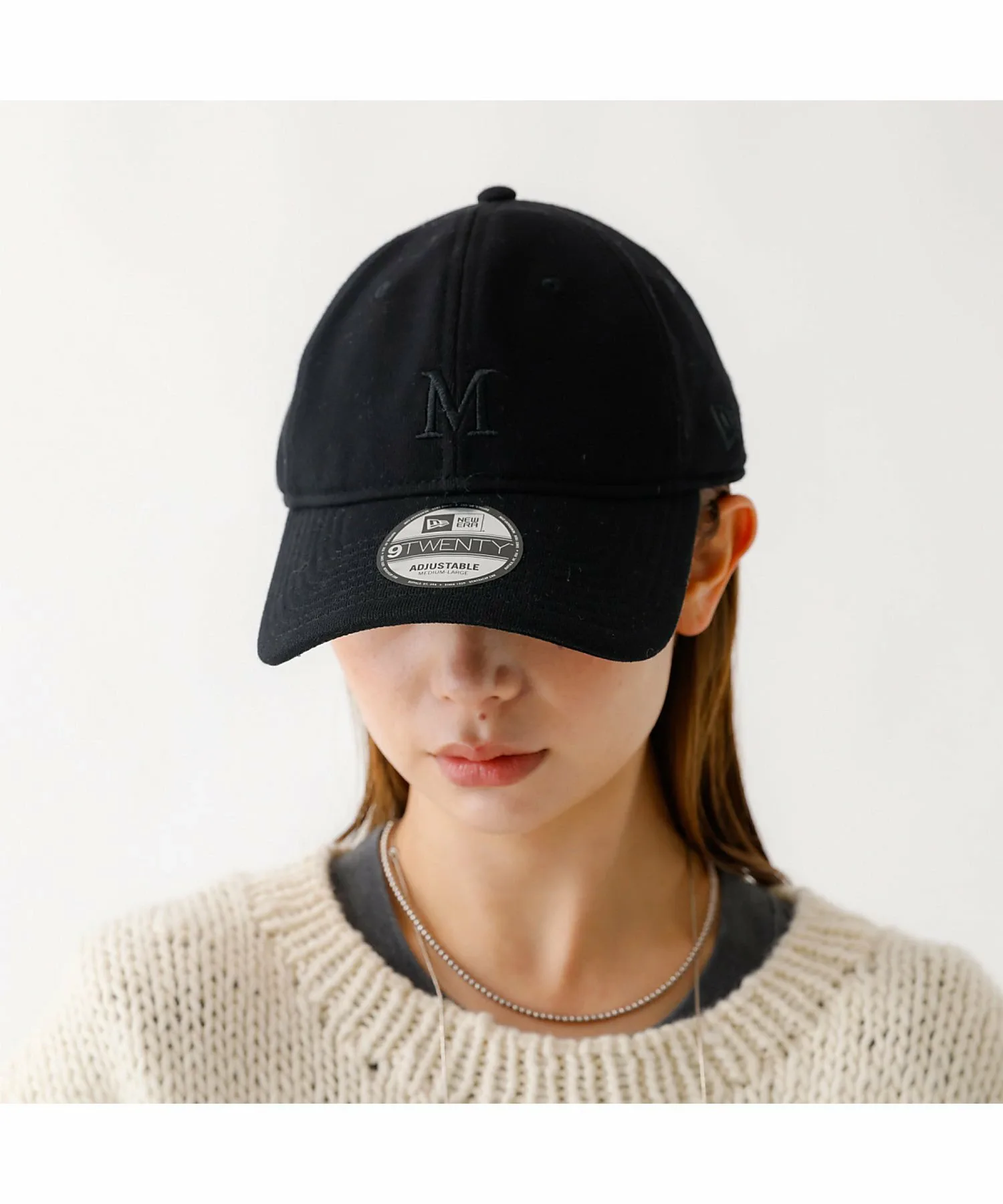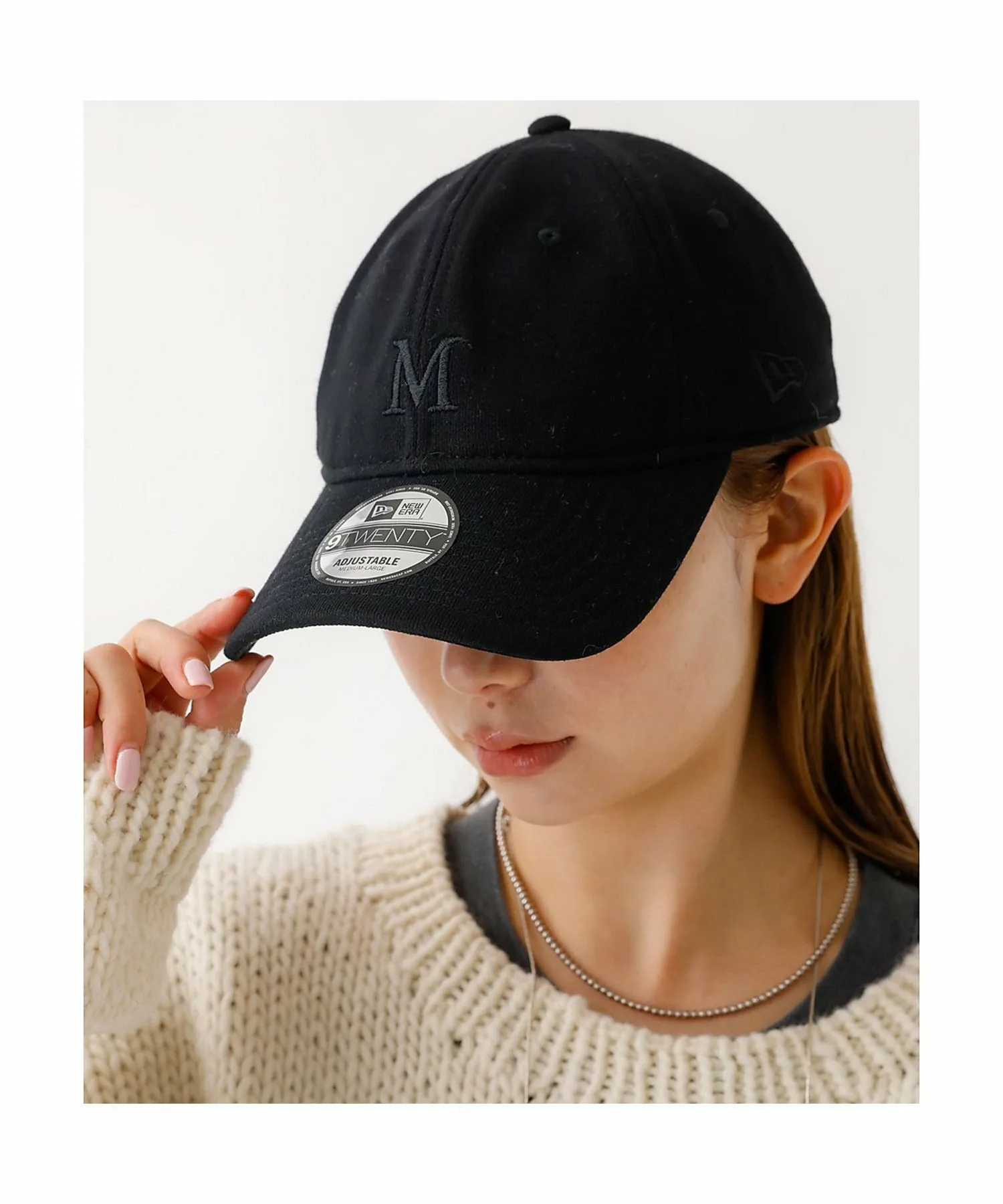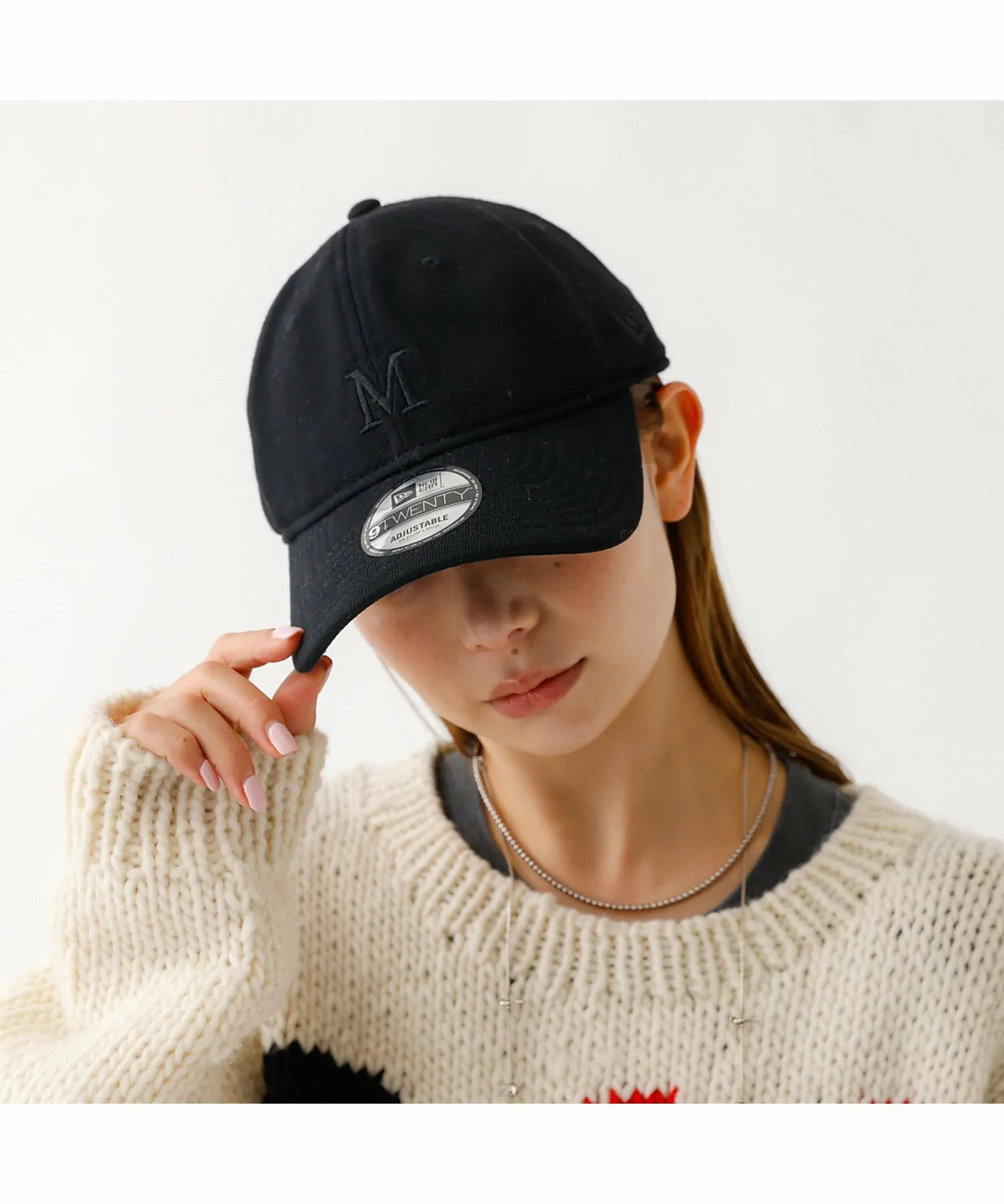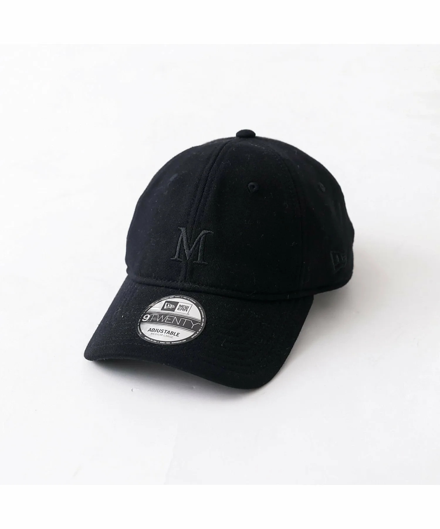 На передней части вышита буква «M» того же цвета, что и материал, сзади вышит логотип NEWERA того же цвета, а также надпись «Mica & Deal» того же цвета.