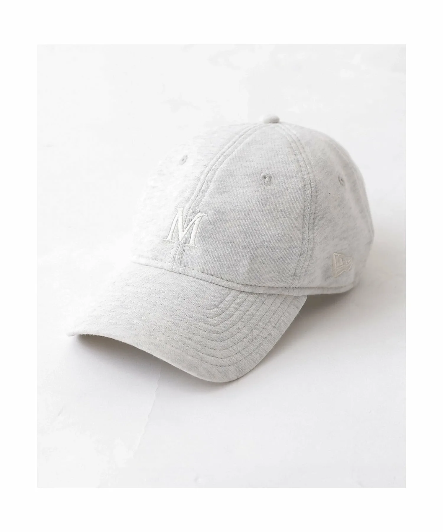 На передней части вышита буква «M» того же цвета, что и материал, сзади вышит логотип NEWERA того же цвета, а также надпись «Mica & Deal» того же цвета.