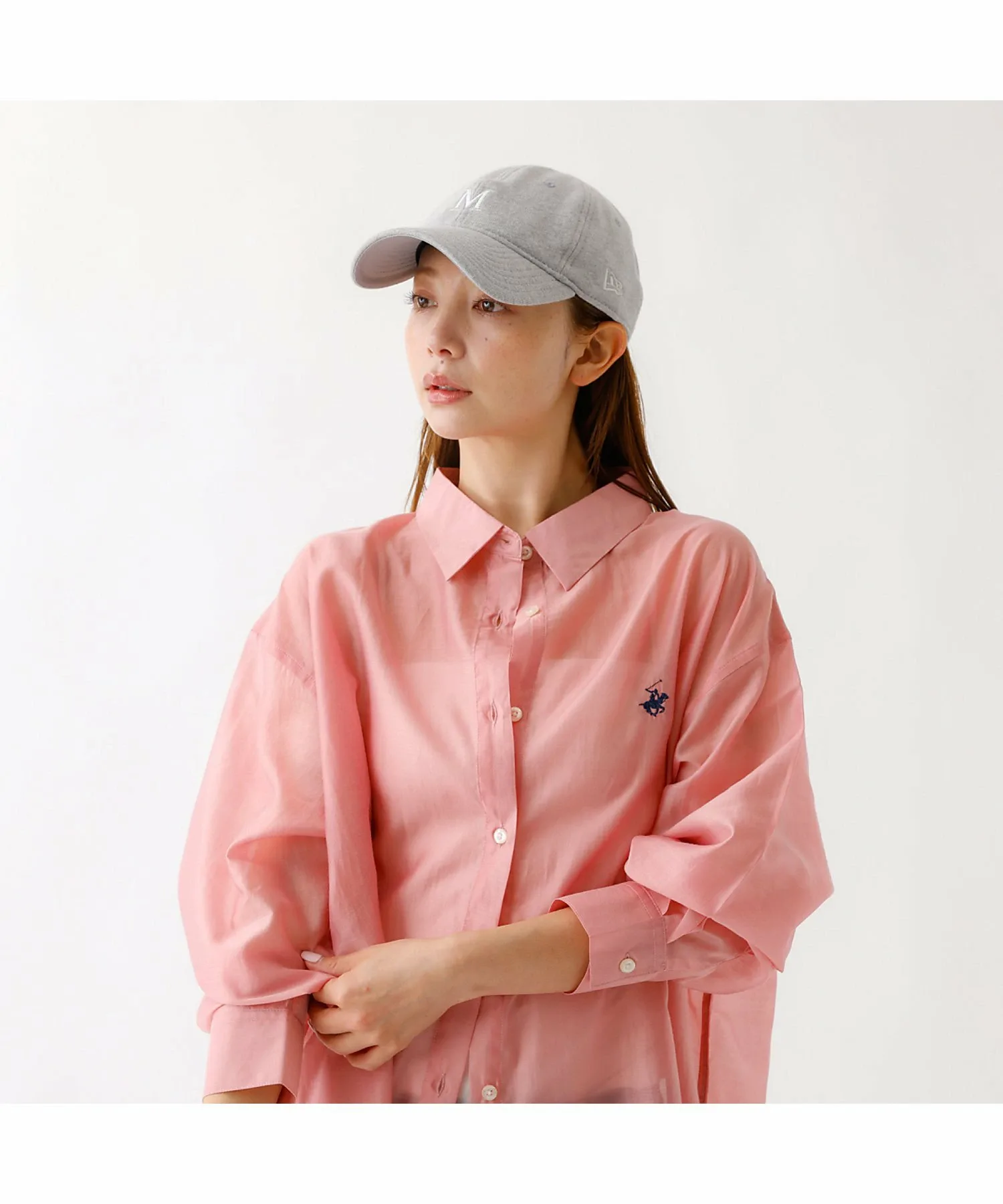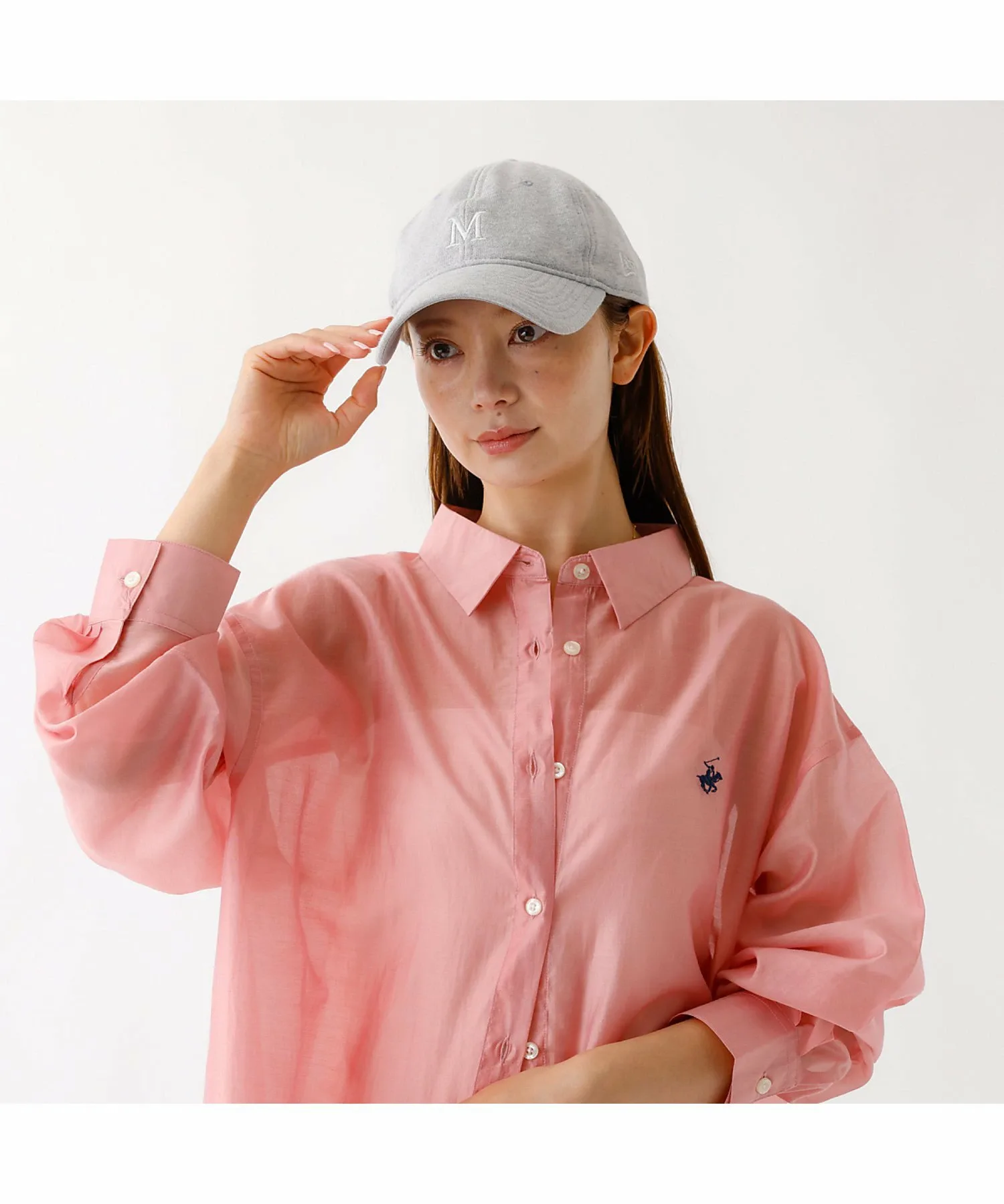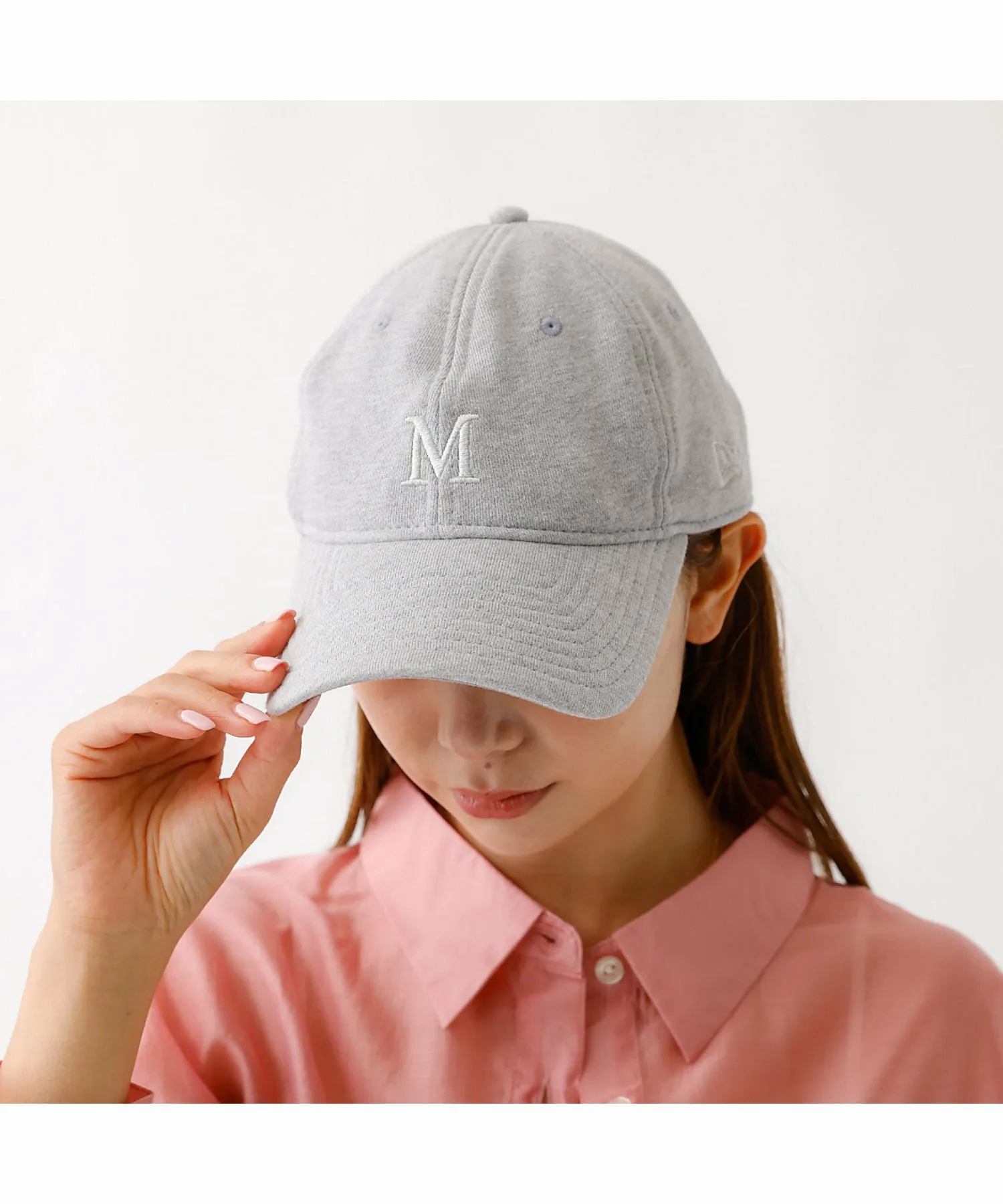 На передней части вышита буква «M» того же цвета, что и материал, сзади вышит логотип NEWERA того же цвета, а также надпись «Mica & Deal» того же цвета.