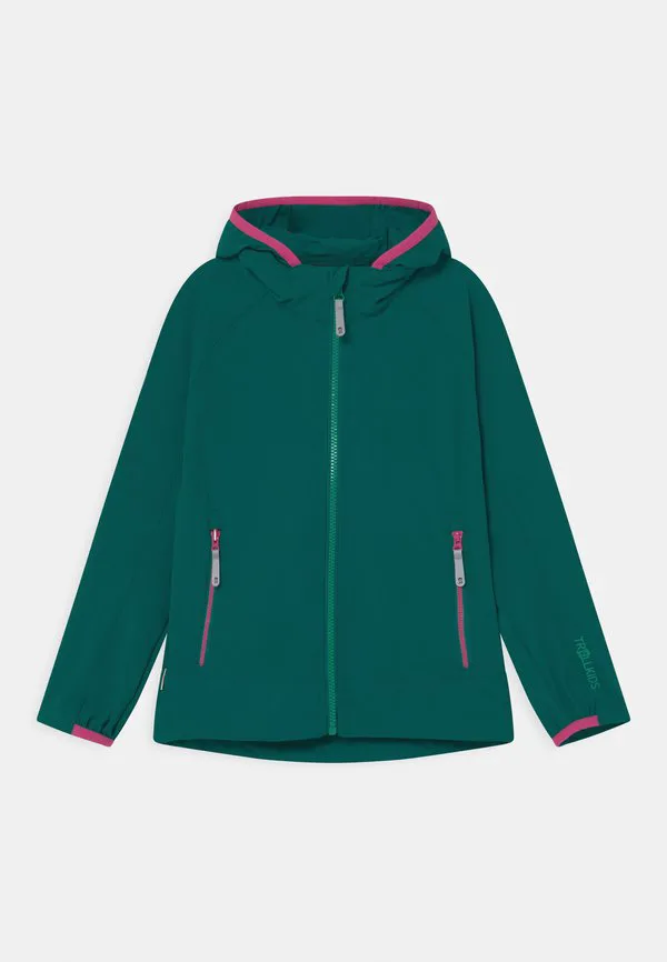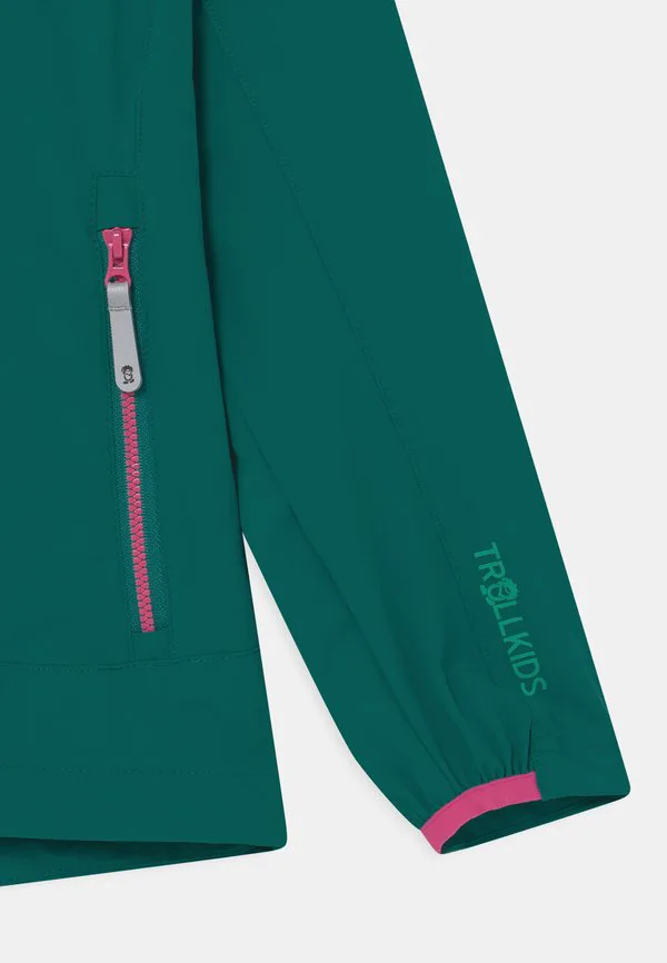 Куртка kvalvika softshell для девочек Trollkids, Smaragd/Pink