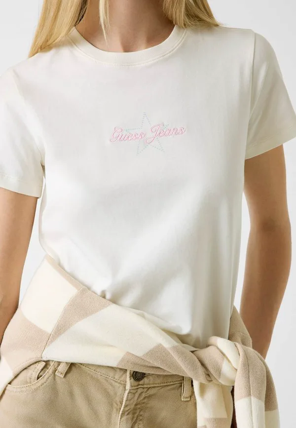 Футболка с принтом mit strasssteinen Guess Jeans, Creme