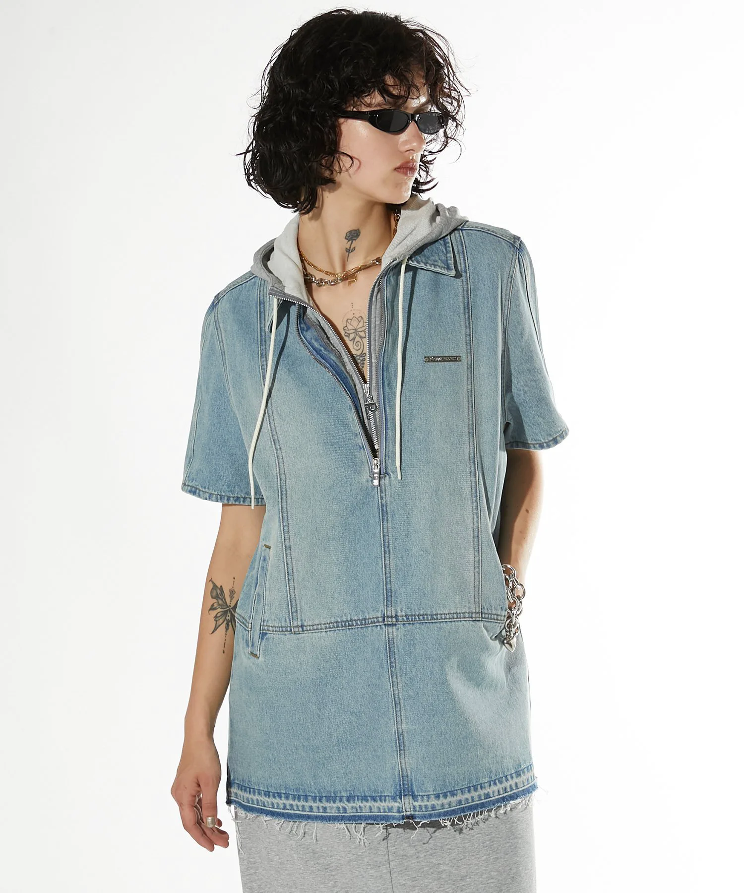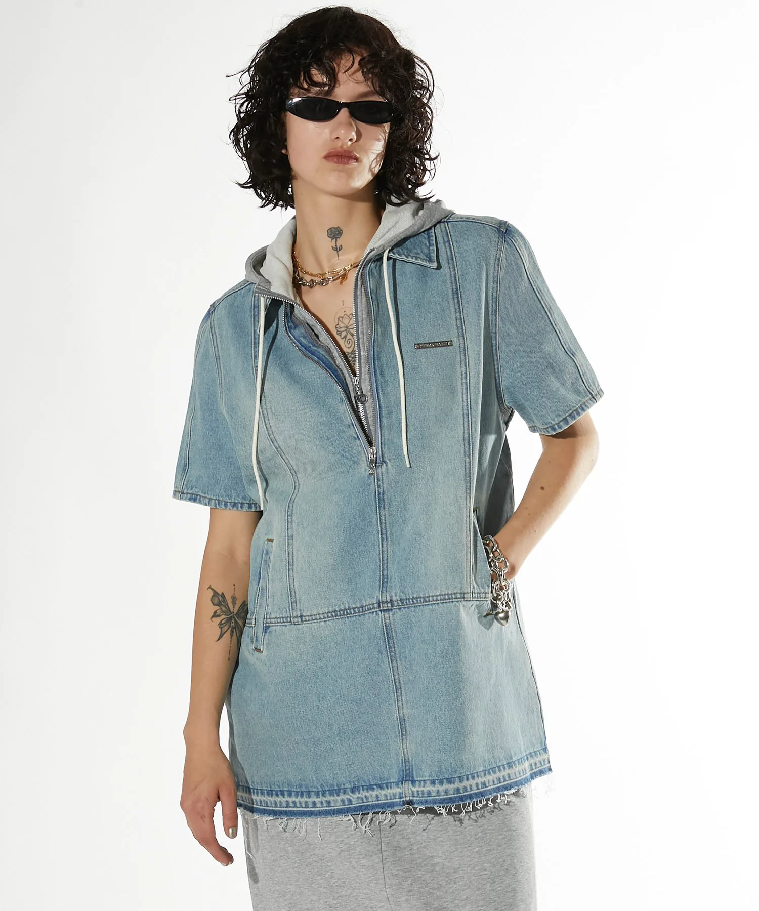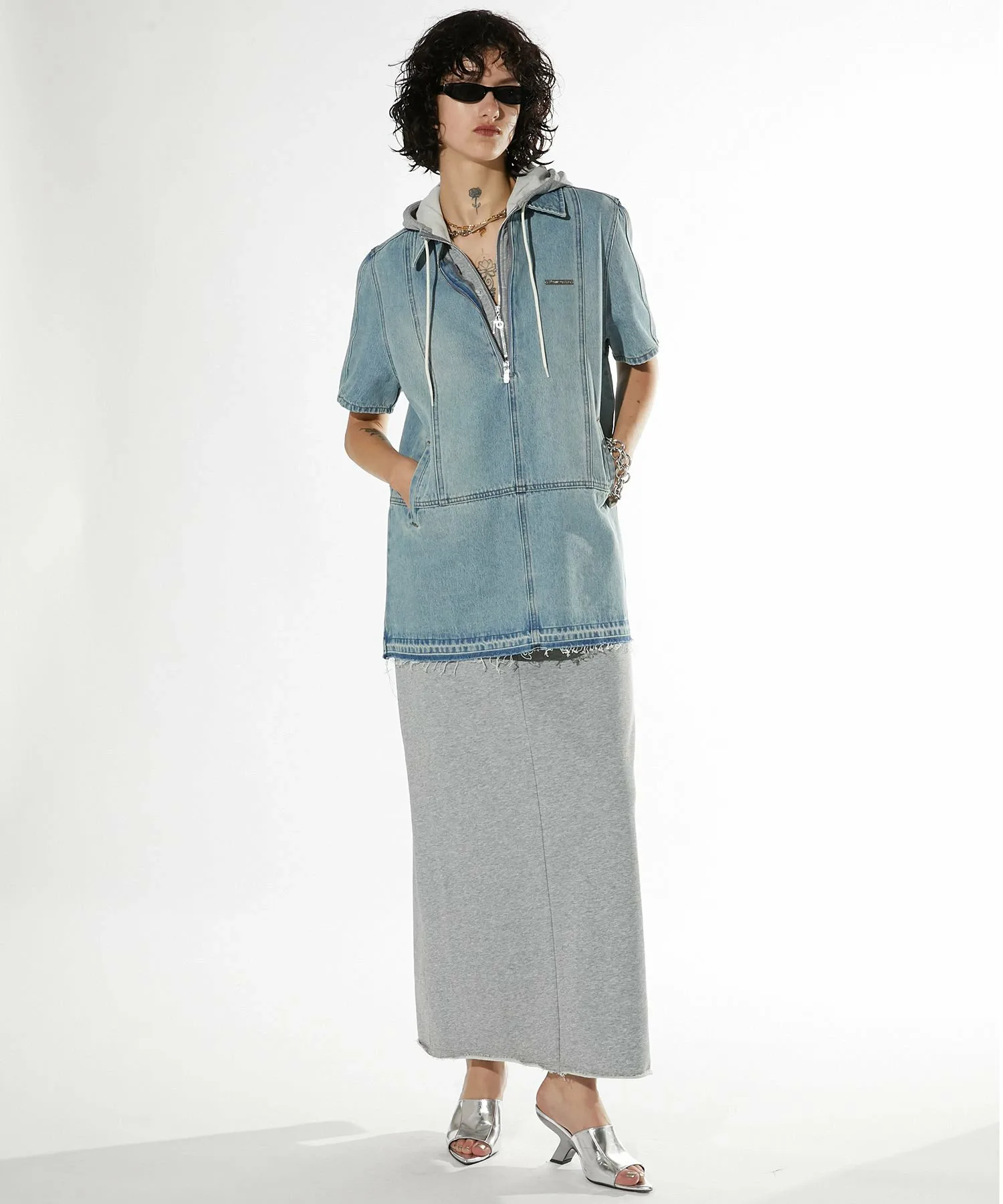 Джинсовая туника свободного кроя.