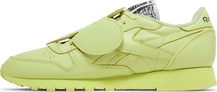 Кроссовки Eames Office x Reebok Classic Leather «Cool Aloe» взяты из коллекции обуви, созданной в сотрудничестве с легендарной дизайнерской студией. Эта монохромная цветовая гамма ретро-силуэта включает в себя декоративный элемент в форме слона Имса, созданный Рэем и Чарльзом Имзом в качестве детской игрушки и стульчика. Культовый толстокожий материал расположен на кружевном ложе того же желтого оттенка, что и кожаный верх и промежуточная подошва из ЭВА. Двойной логотип Reebok и Eames украшает тканую бирку на язычке и специальную стельку.