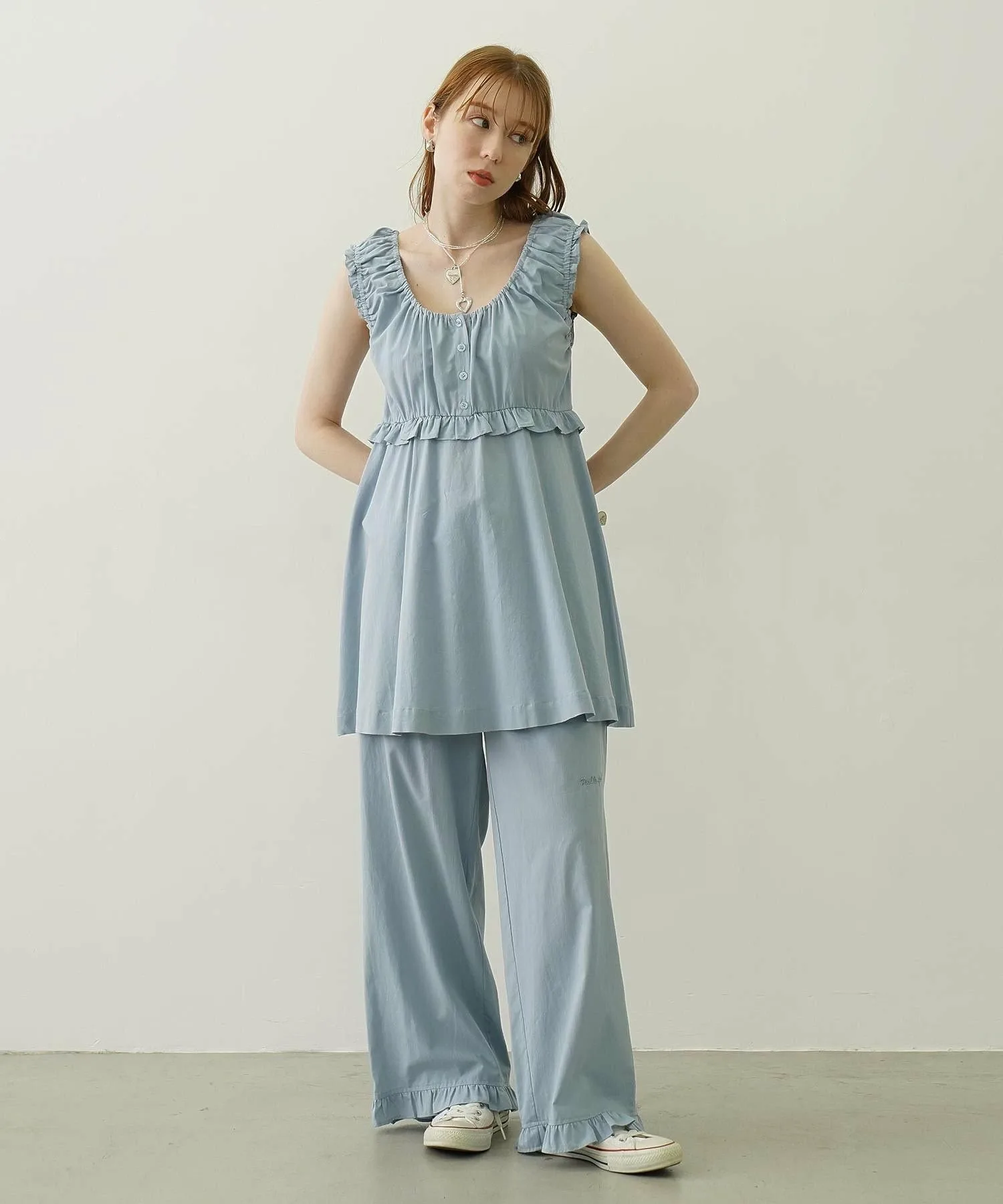 Мы также рекомендуем носить его в комплекте с брюками с оборками (103252031011), изготовленными из того же материала.