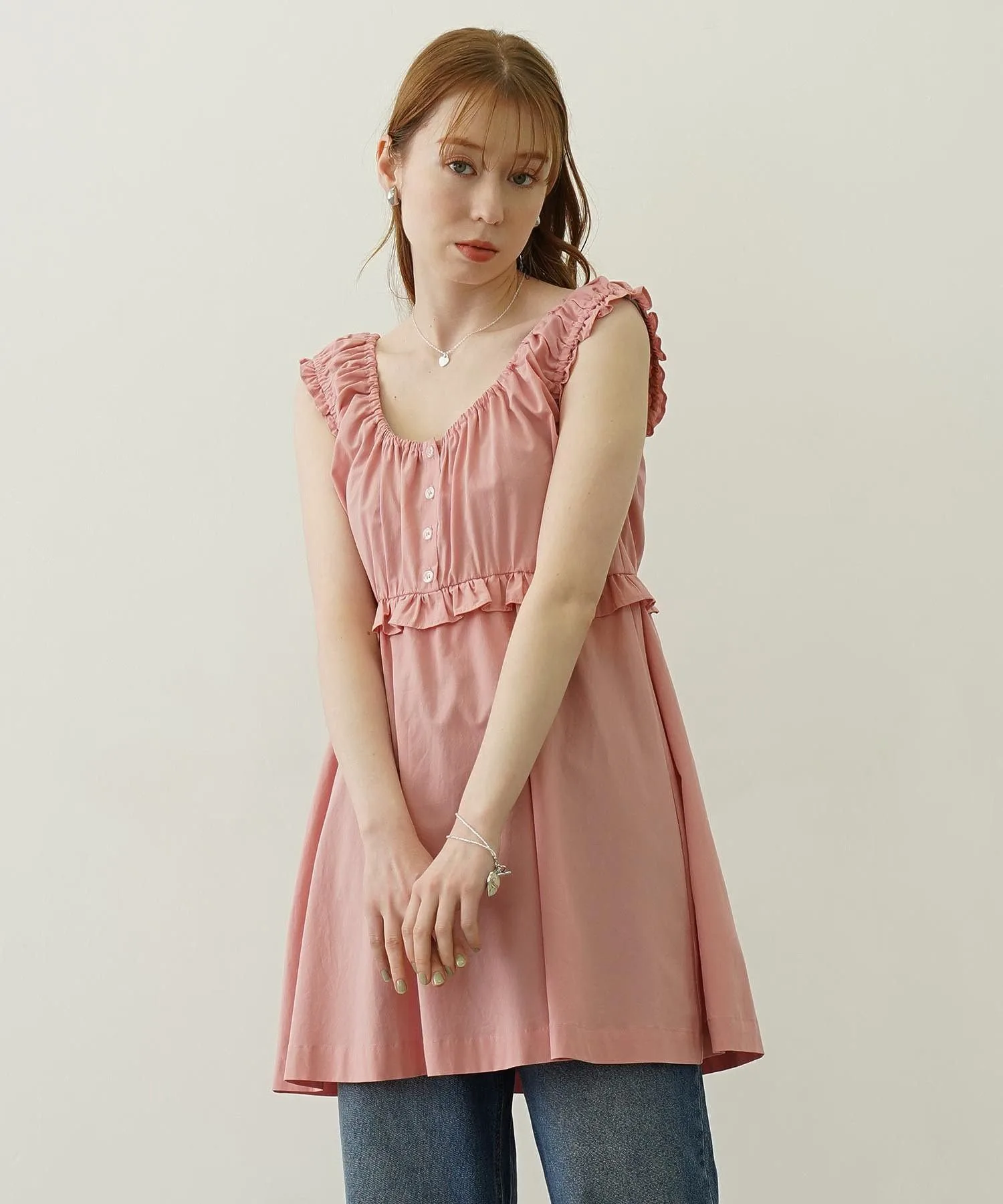 Сборки от воротника до области под грудью добавляют объем, создавая женственный образ.