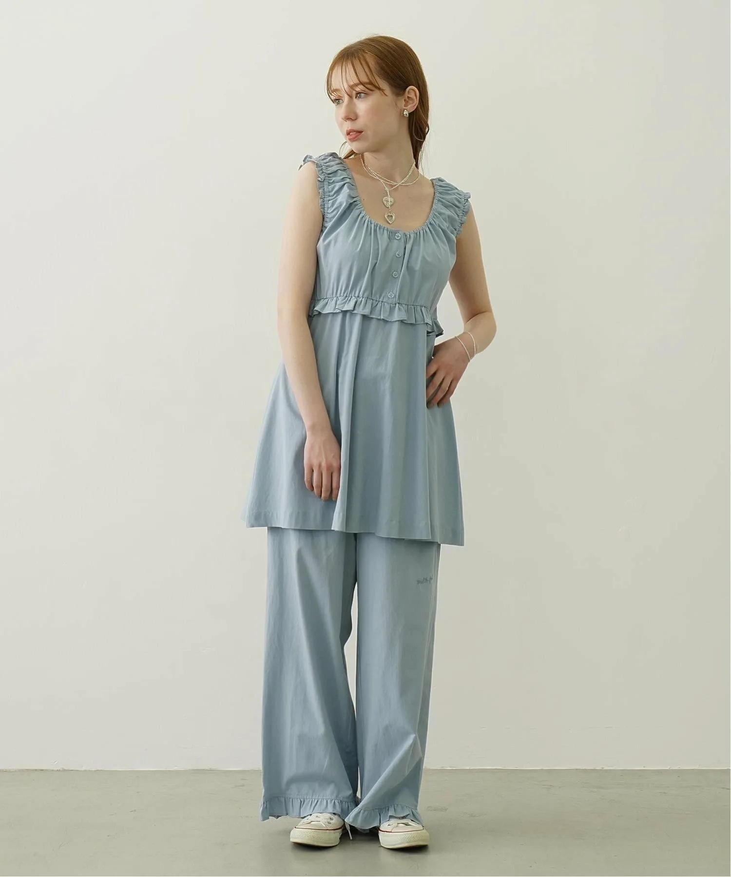 Мы также рекомендуем носить его в комплекте с брюками с оборками (103252031011), изготовленными из того же материала.