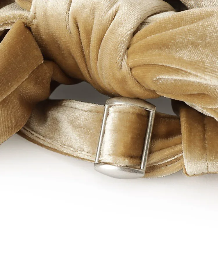 Эта шапочка с лентой изготовлена из блестящей велюровой ткани и идеально подходит для осени и зимы.