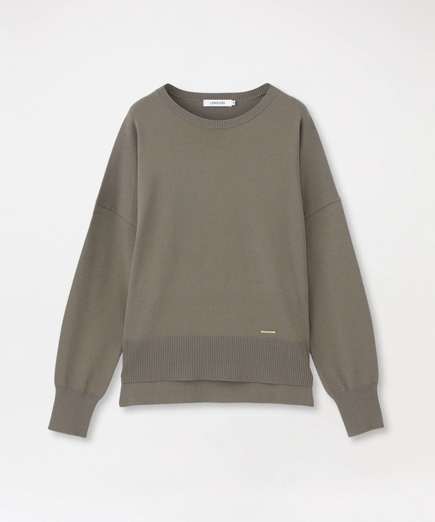Простой, лаконичный трикотажный свитер с круглым вырезом.