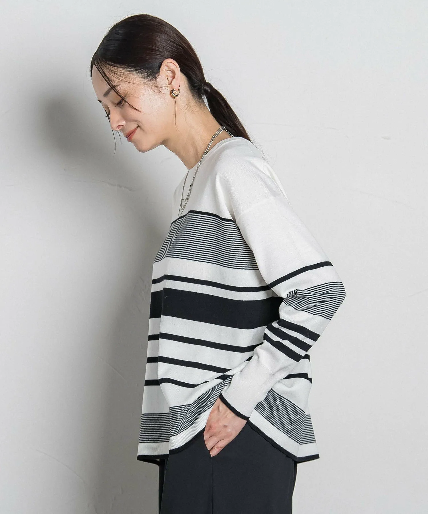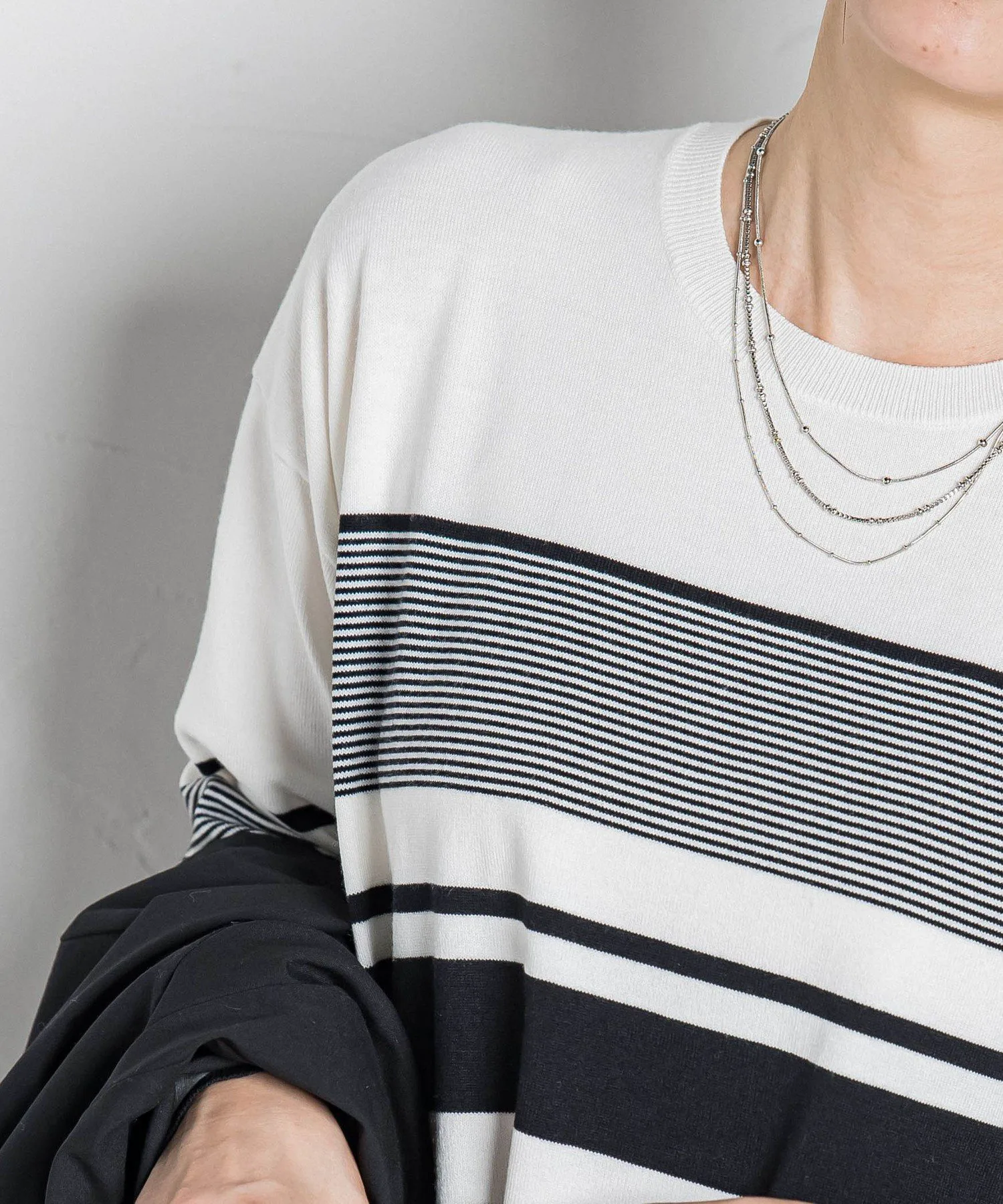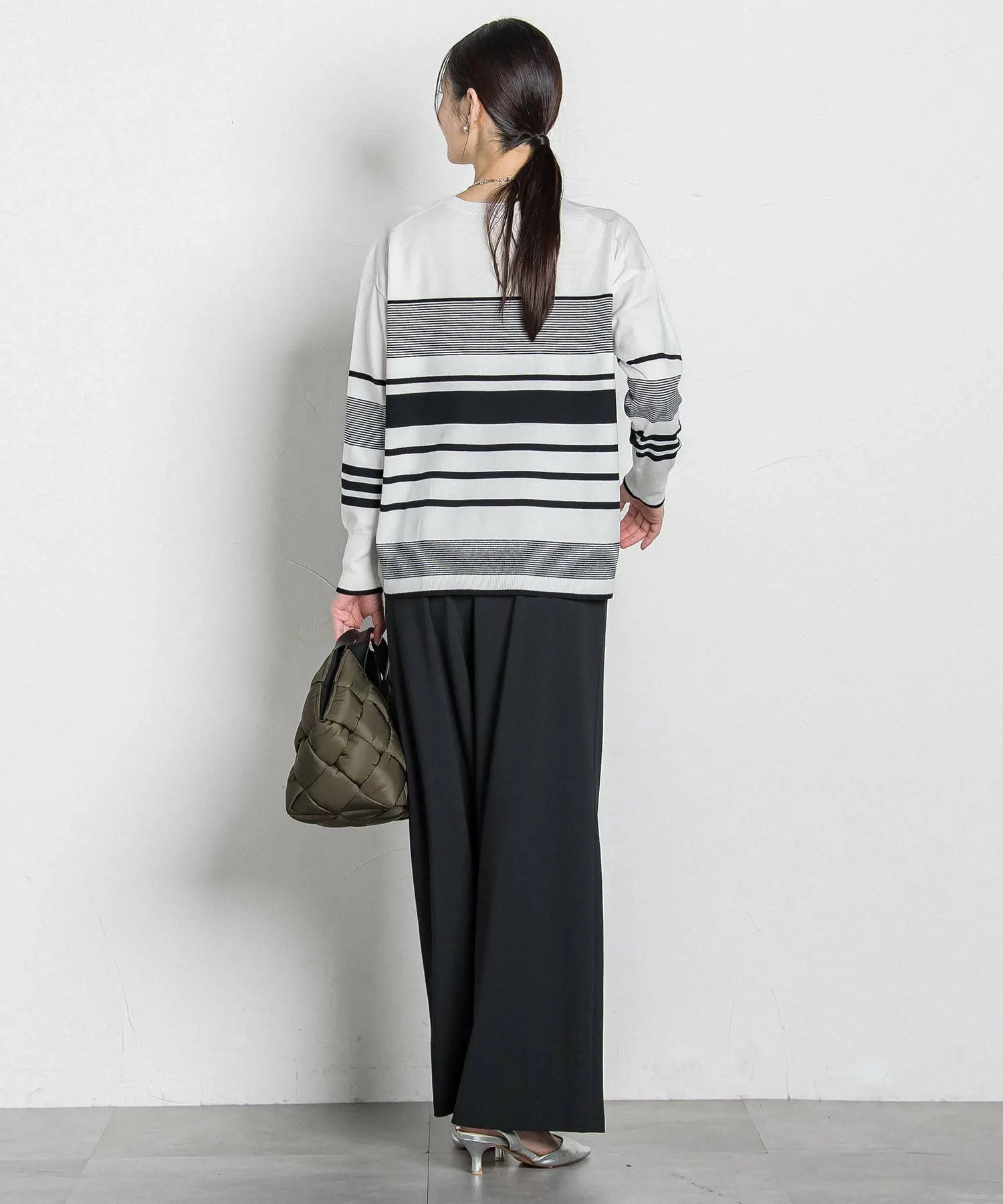 Спущенные плечи и свободный силуэт создают расслабленный, но при этом лаконичный образ.