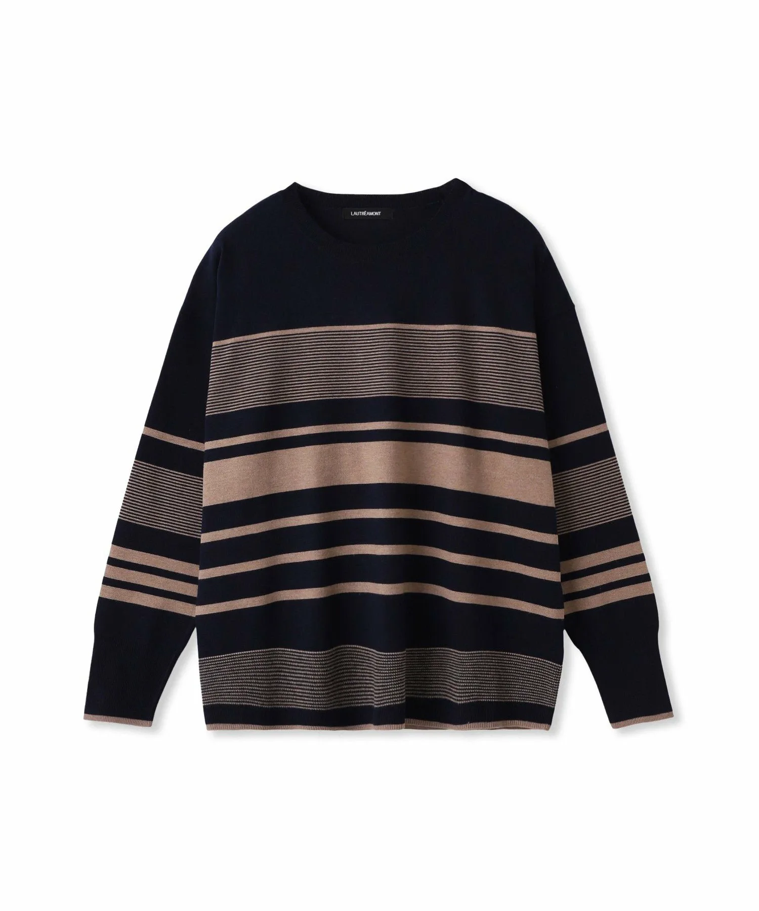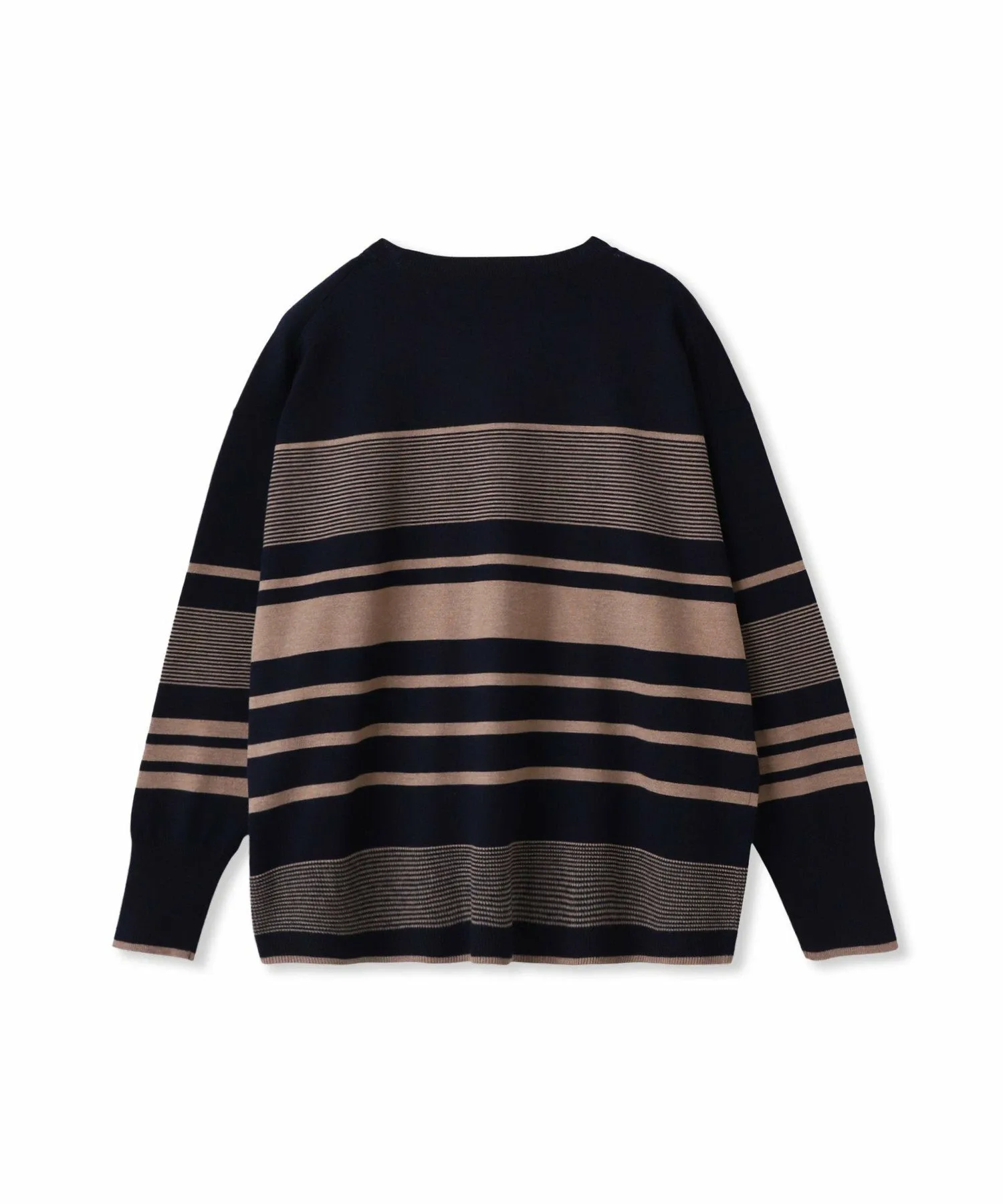 Этот вязаный пуловер украшен полосатым узором, расположенным в произвольном порядке, что добавляет легкости повседневному стилю для взрослых.