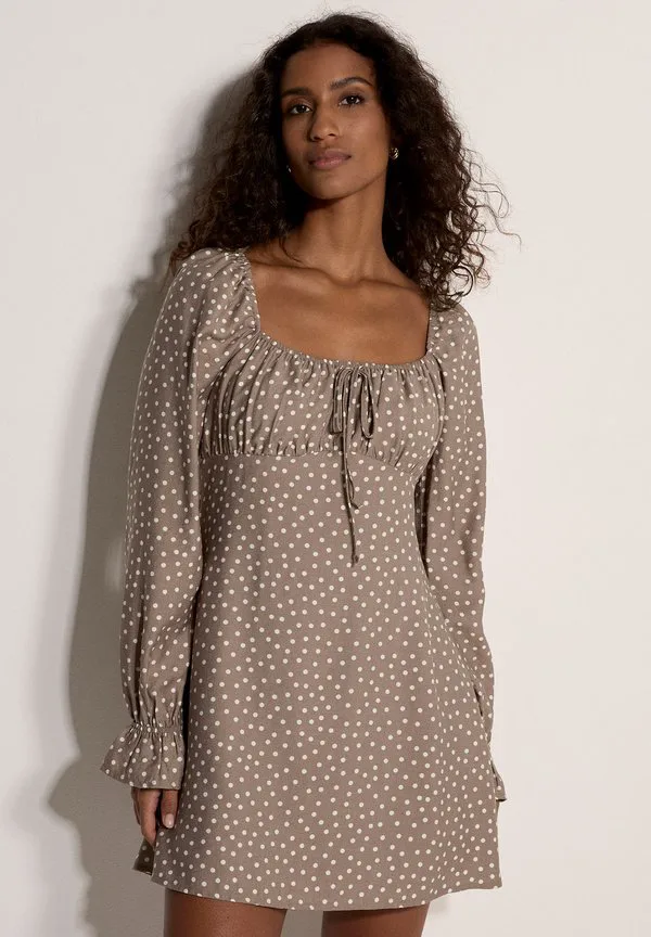 Дневное мини-платье доярки в горошек Apricot, Stone