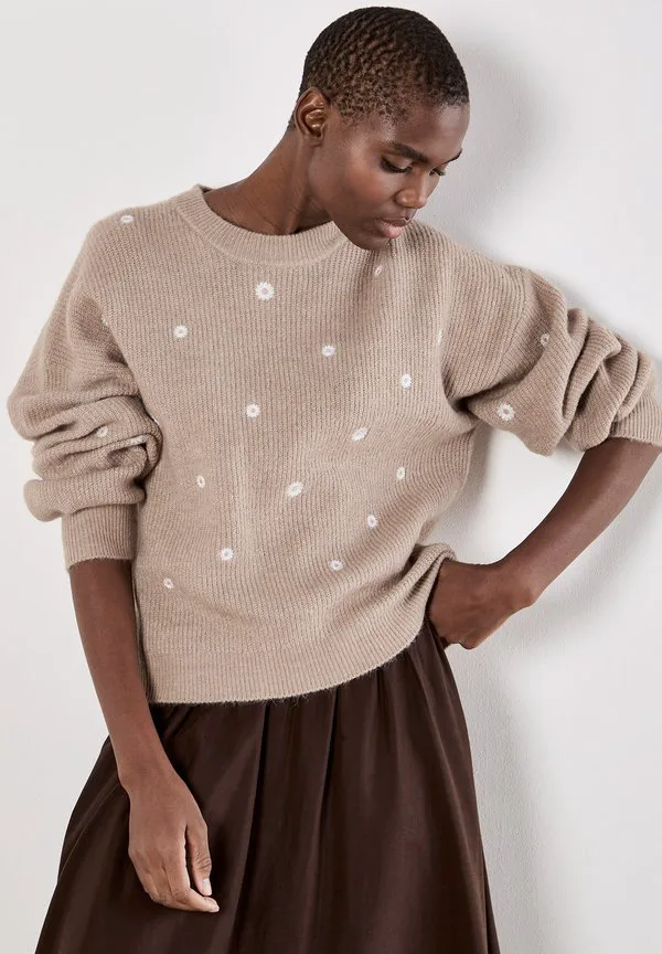 Джемпер с вышивкой в виде ромашек Apricot, Stone
