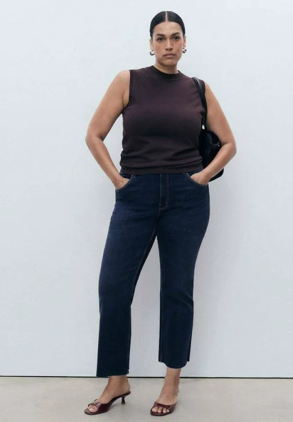Укороченные джинсы-клеш цвета сиены Mango, Dark Blue