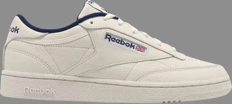 Reebok Club C 85 MU - это к теннисному стилю 1980-х годов. Этот вариант, выпущенный в октябре 2019 года, выполнен в классическом стиле из кожи мелового помятого цвета с историческим логотипом Union Jack на боковине, декоративной строчкой и контрастной подкладкой. Фирменный темно-синий цвет зарезервирован для ярлыка на язычке и логотипа на пятке. Ностальгия по силуэту, зародившемуся на корте, внизу сохранена соответствующая резиновая подошва cupsole.