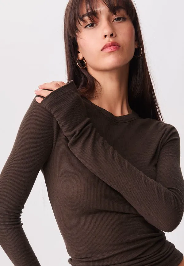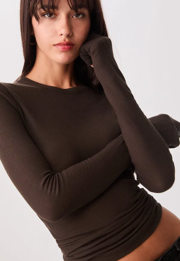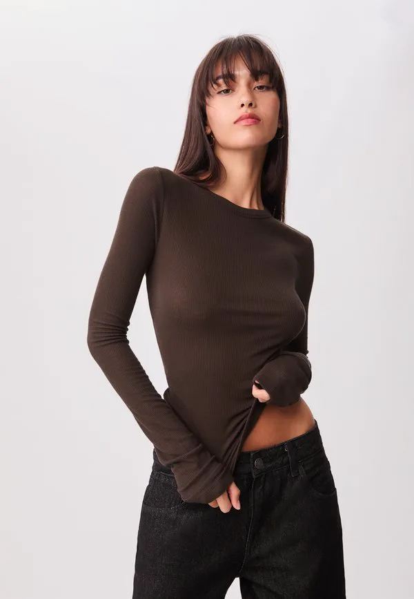 Топ с длинными рукавами Stradivarius, Dark Brown