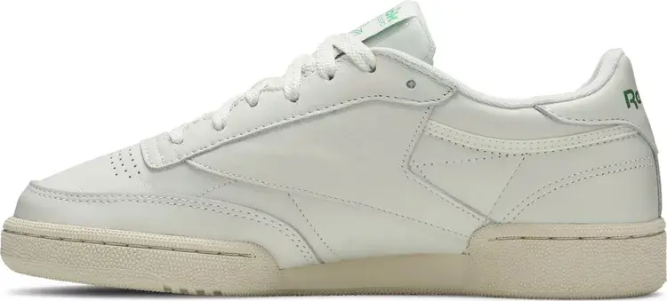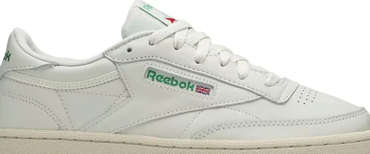 Reebok Wmns Club C 85 Vintage символизирует английское происхождение и придворное наследие бренда. Это женское обновление, представленное в августе 2019 года, отражает стиль старой школы в коже для одежды «Chalk», украшенной двойной строчкой, архивным лейблом Starcrest на язычке и боковых накладках. Подпись бренда напечатана зеленым цветом на пятке, а окошко с логотипом украшает Юнион Джек. Промежуточная подошва из ЭВА и подошва из износостойкой резины завершают образ.