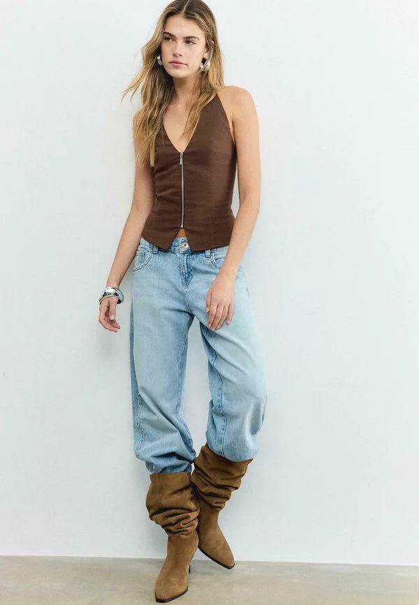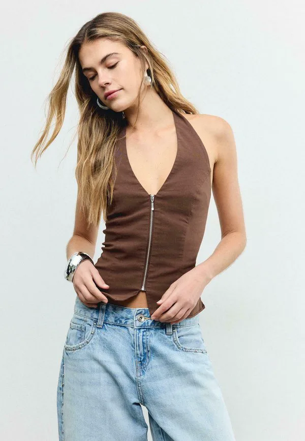 Топ-Халтер из бенгалина Stradivarius, Dark Brown