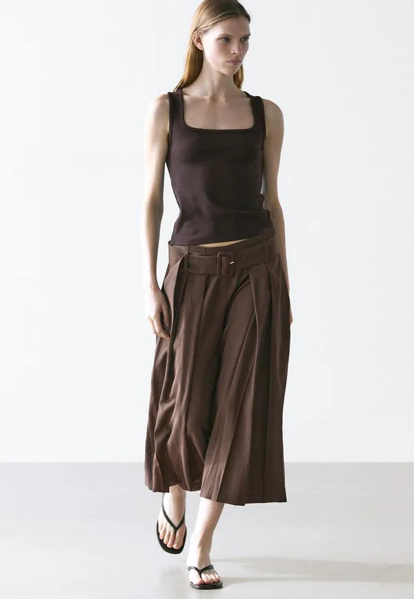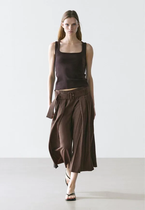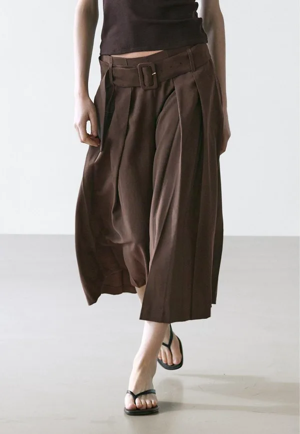 Плиссированные брюки миди Massimo Dutti, Dark Brown