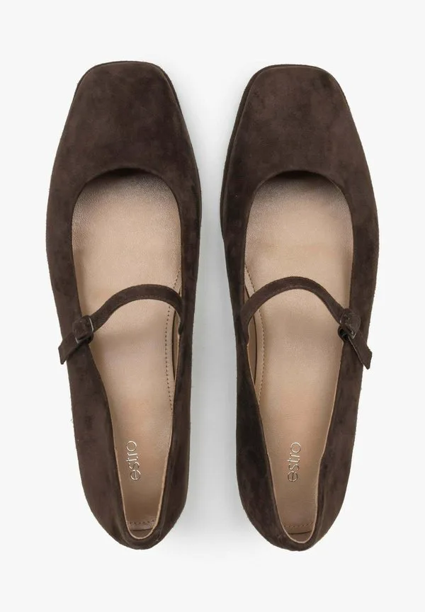 Балетки с ремешком на щиколотке Estro, Dark Brown