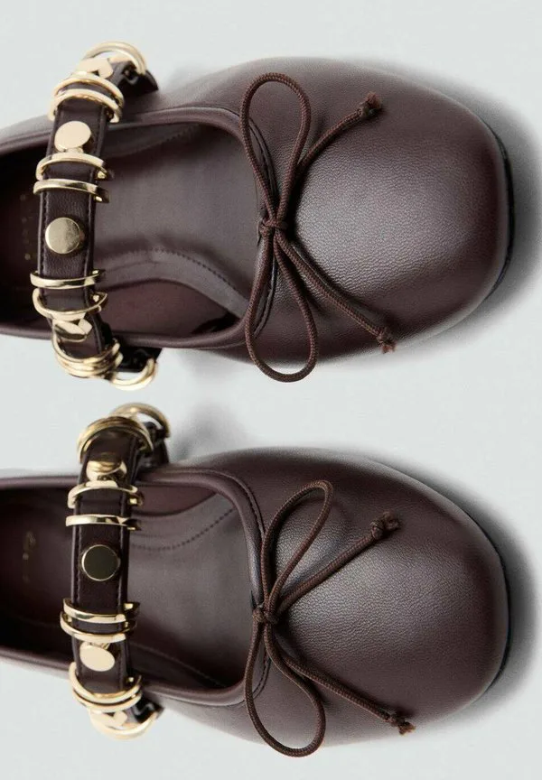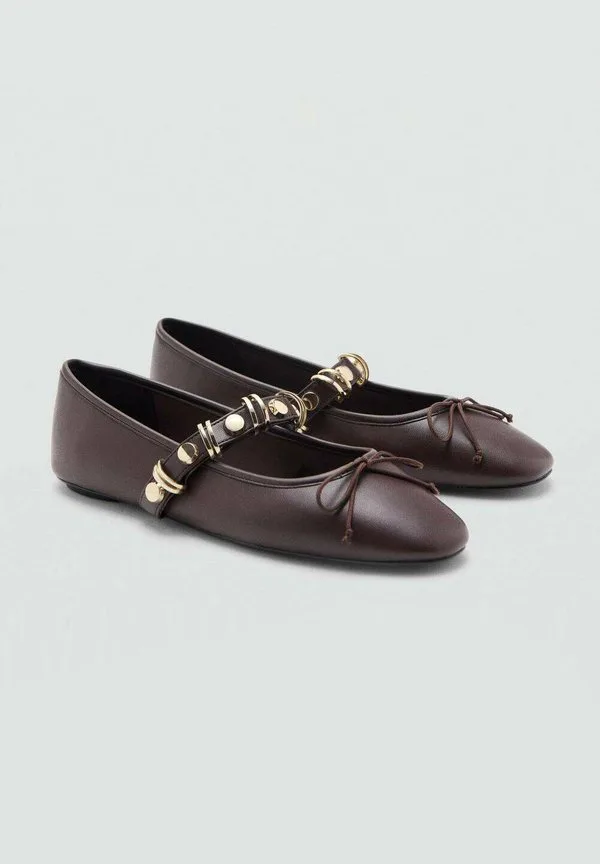 Балетки с ремешком на щиколотке Mango, Dark Brown
