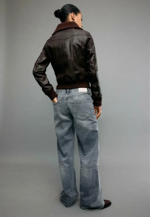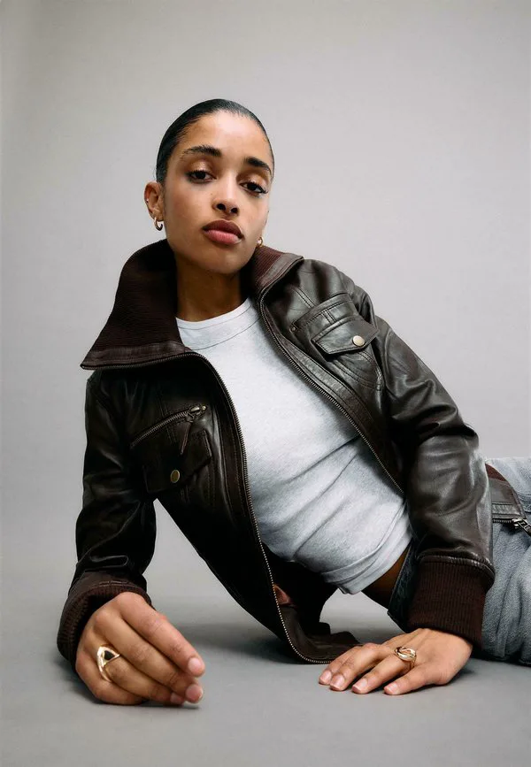 Кожаная куртка Stradivarius, Dark Brown 13 702₽